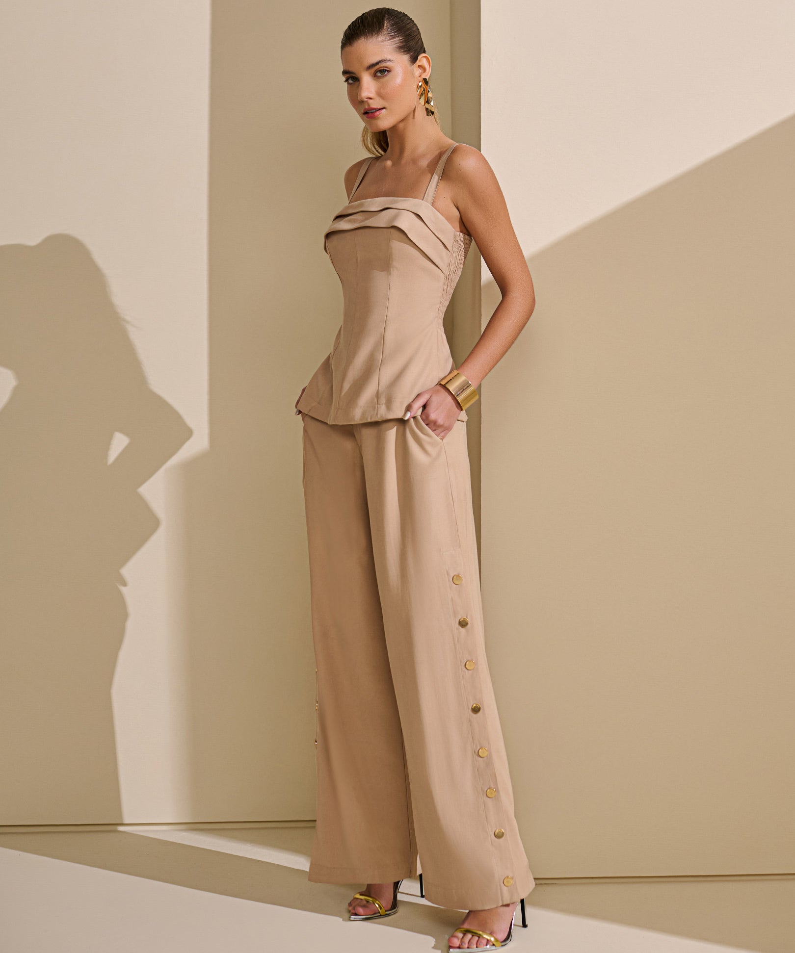 Calça Wide Leg Renda Lateral