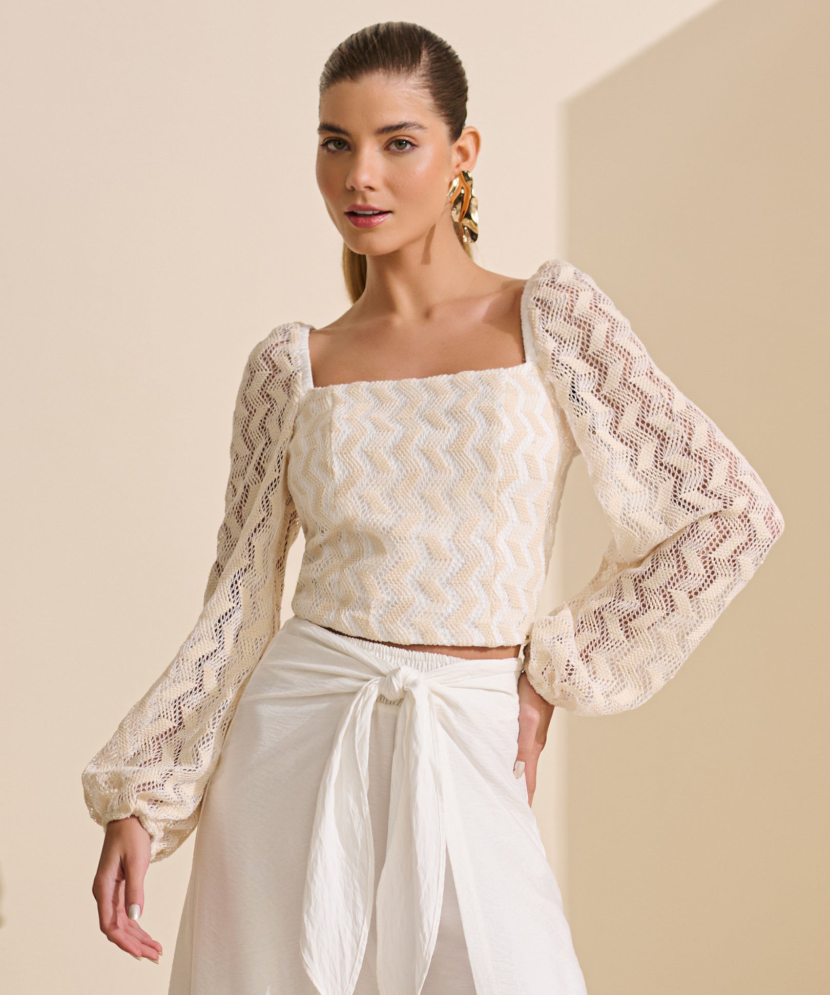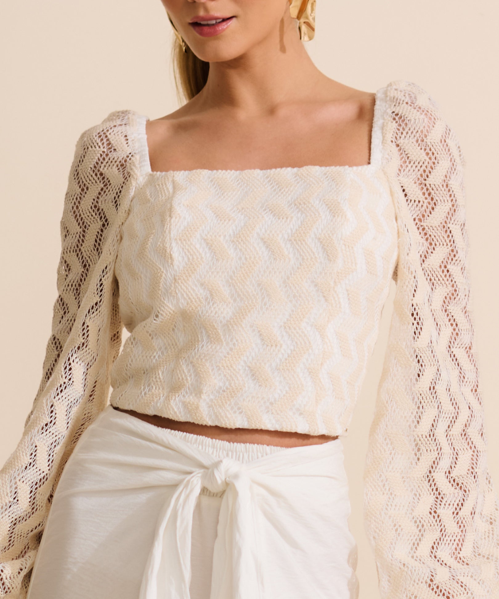 Blusa Crochê Cropped Trama Chevron