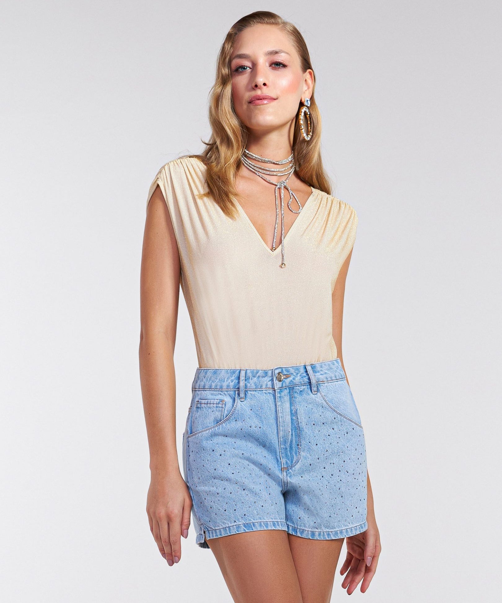 Bermuda Jorts de Alfaiataria com Botão Dourado