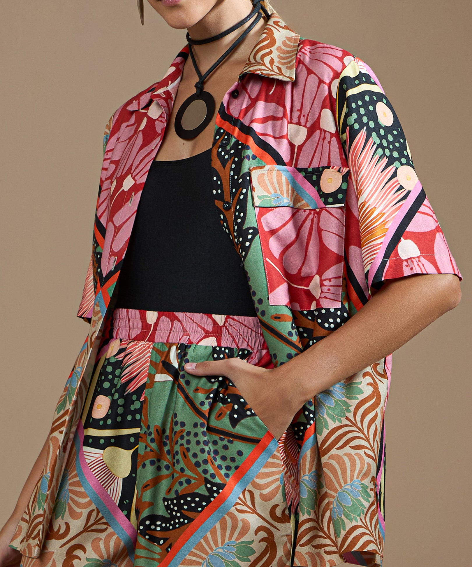 Camisa Manga Curta Estampa Lenço