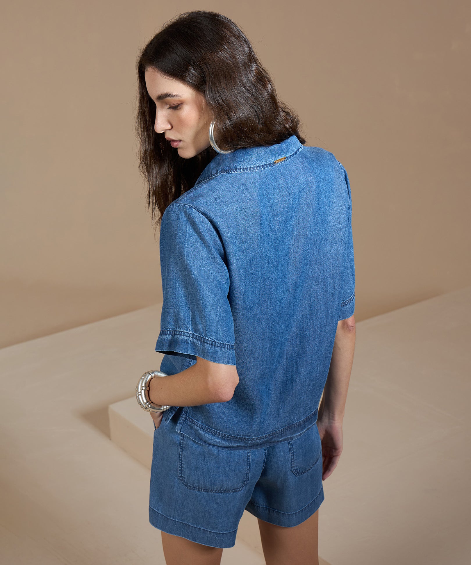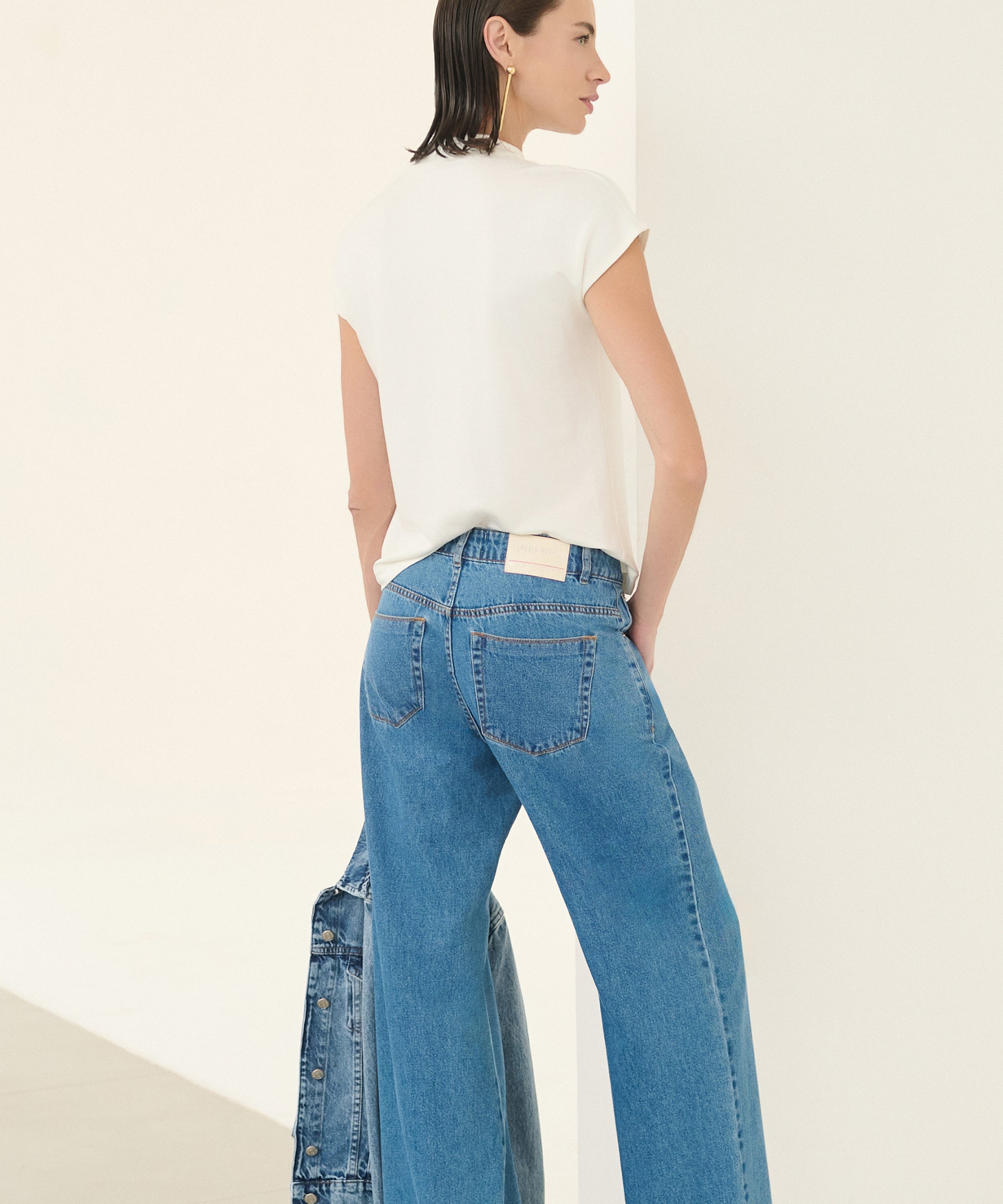 Blusa Jeans Estilo Colete com Regulador nas Costas