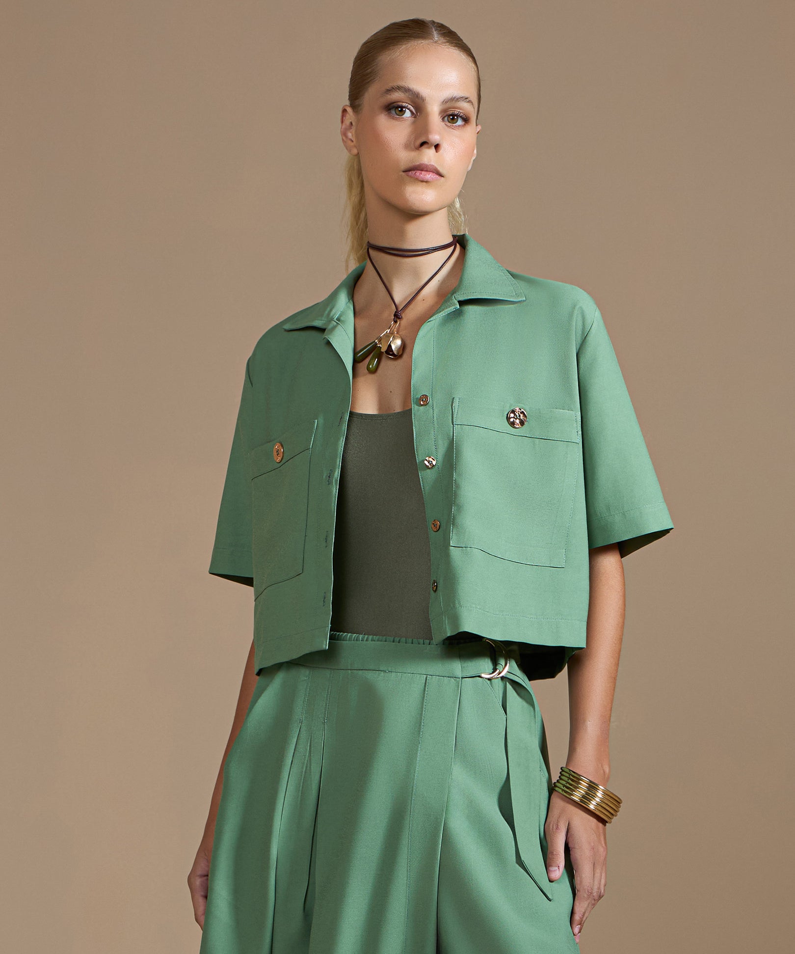 Camisa Cropped em PU
