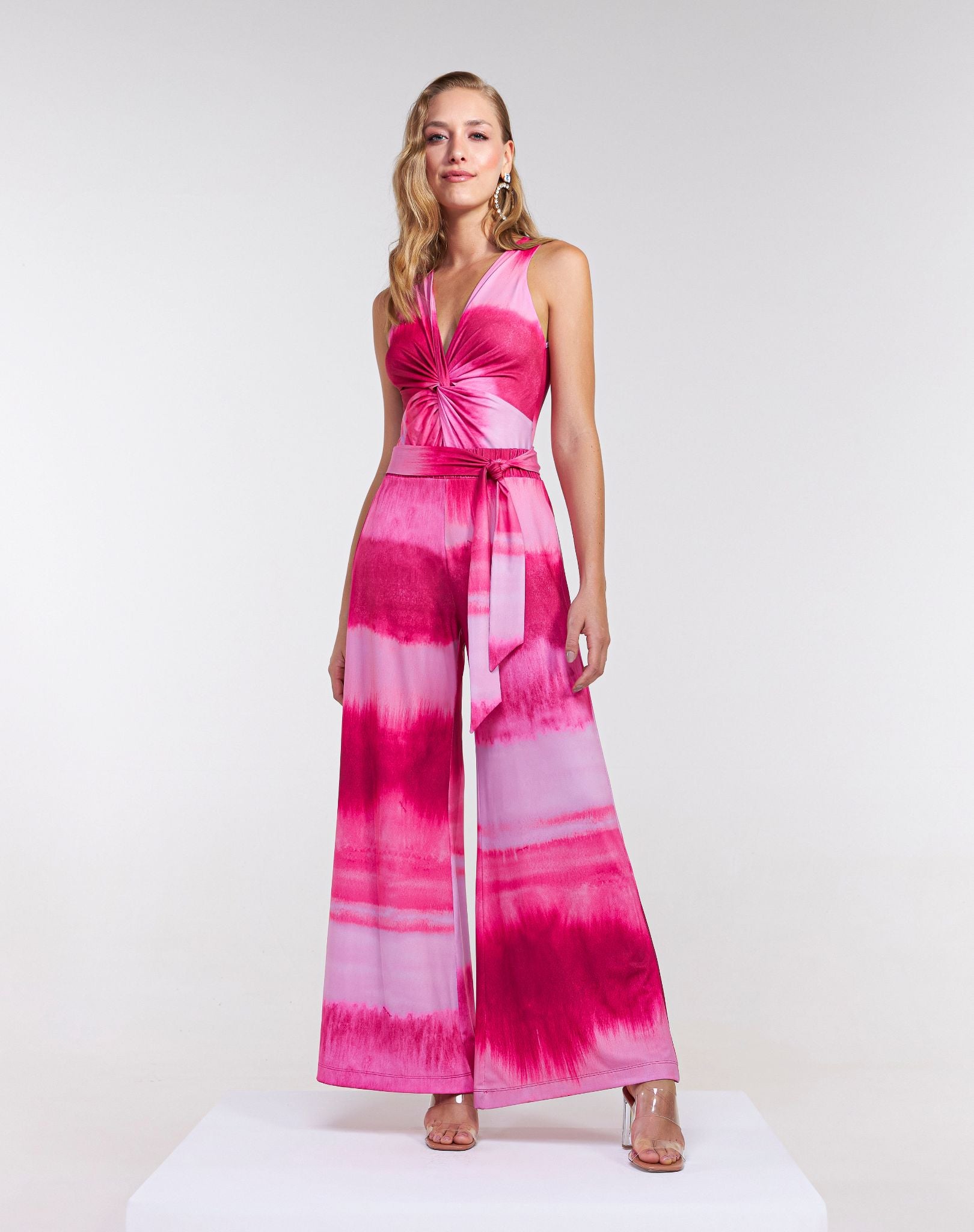 A peça que traz a tendência do tie dye com o máximo de elegância e conforto. Esta calça pantalona é confeccionada em malha suave e possui um caimento fluido, que cria movimento e valoriza o corpo sem marcar. A estampa tie dye nos belos tons de rosa é moderna, alegre e cheia de personalidade.