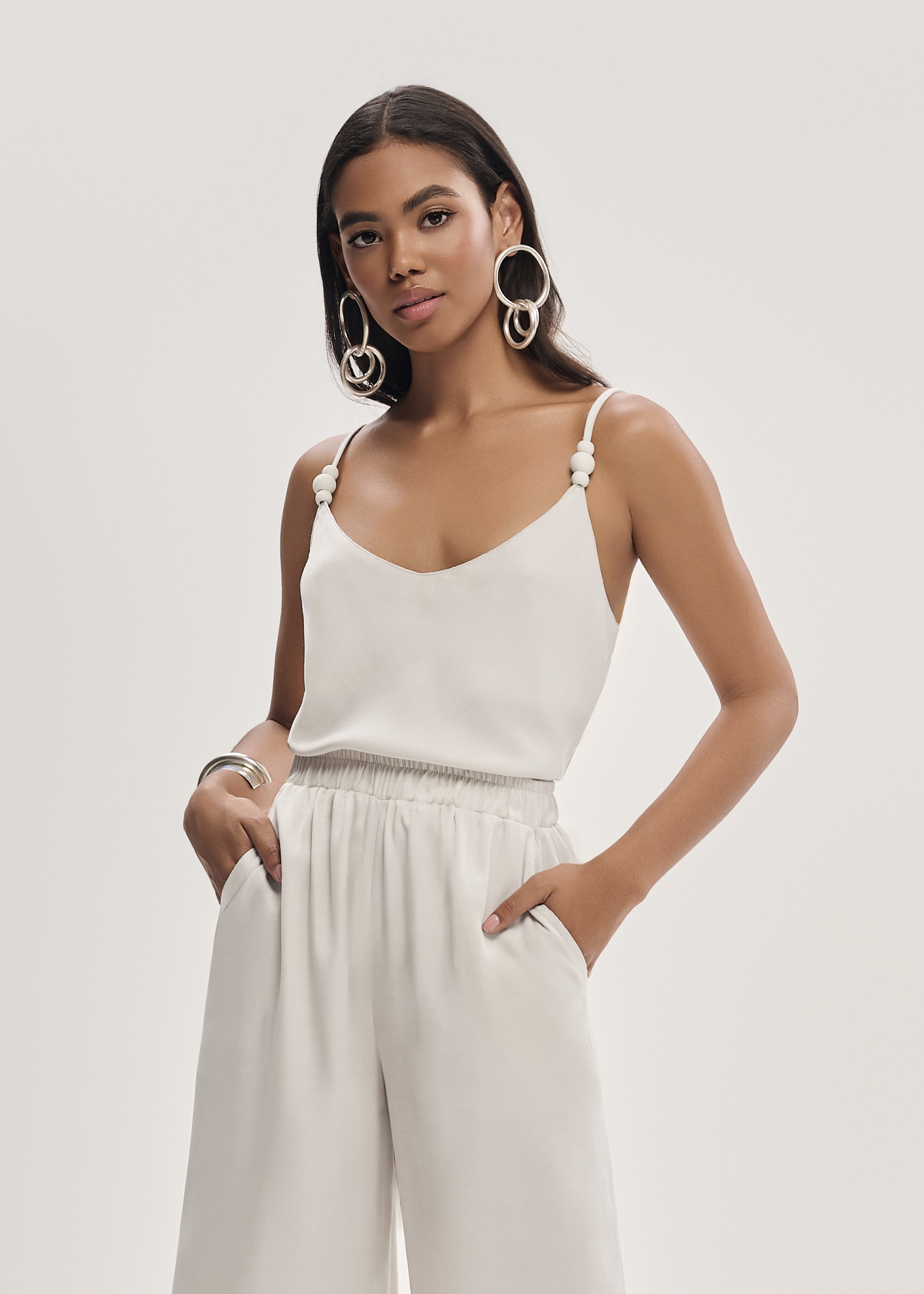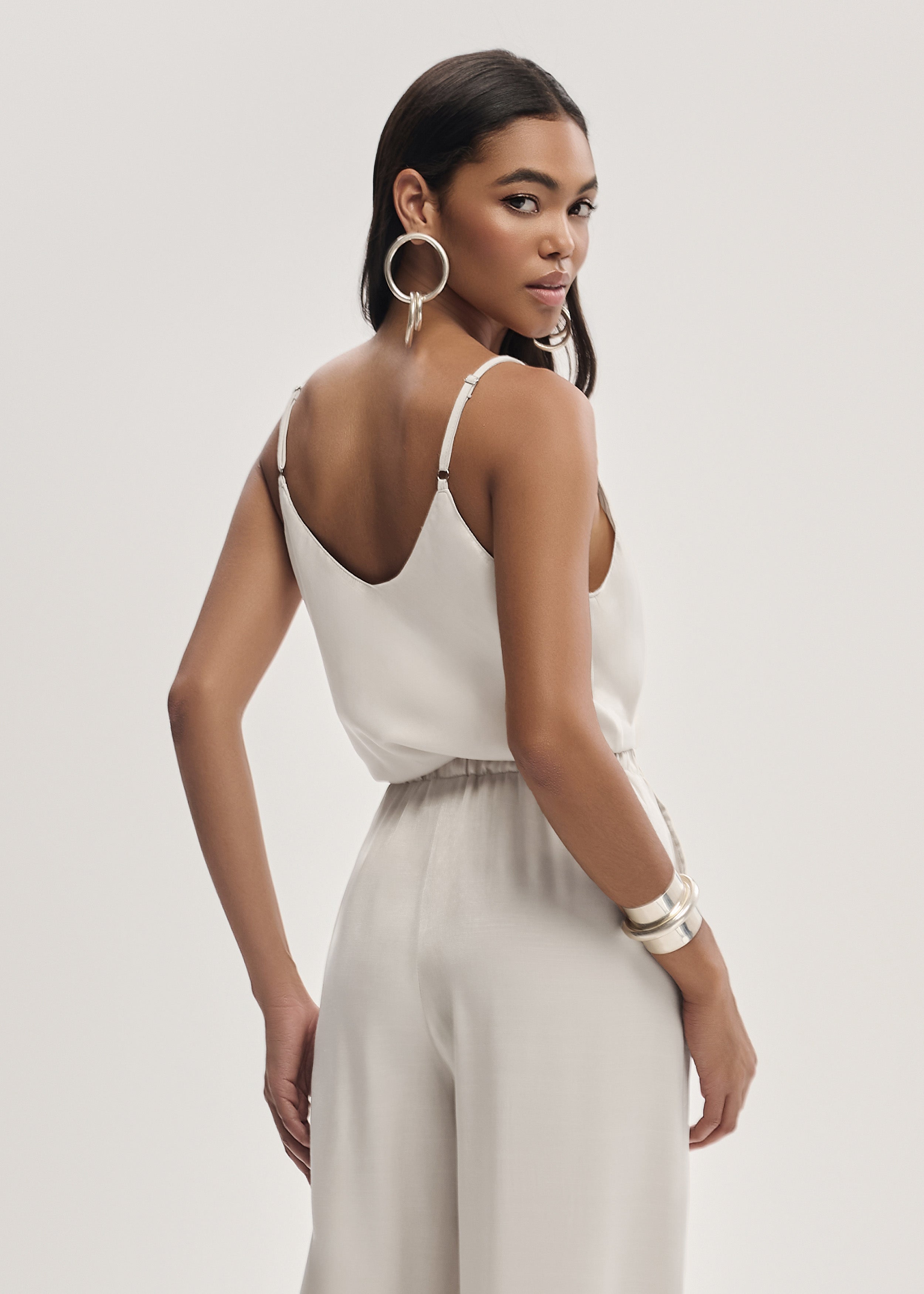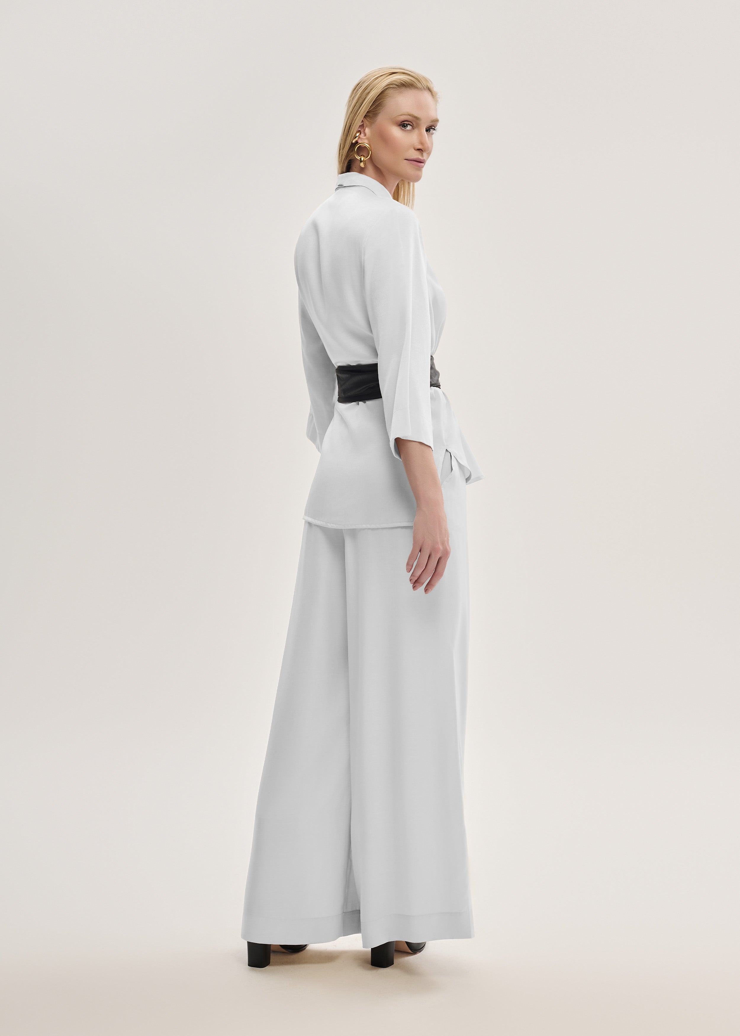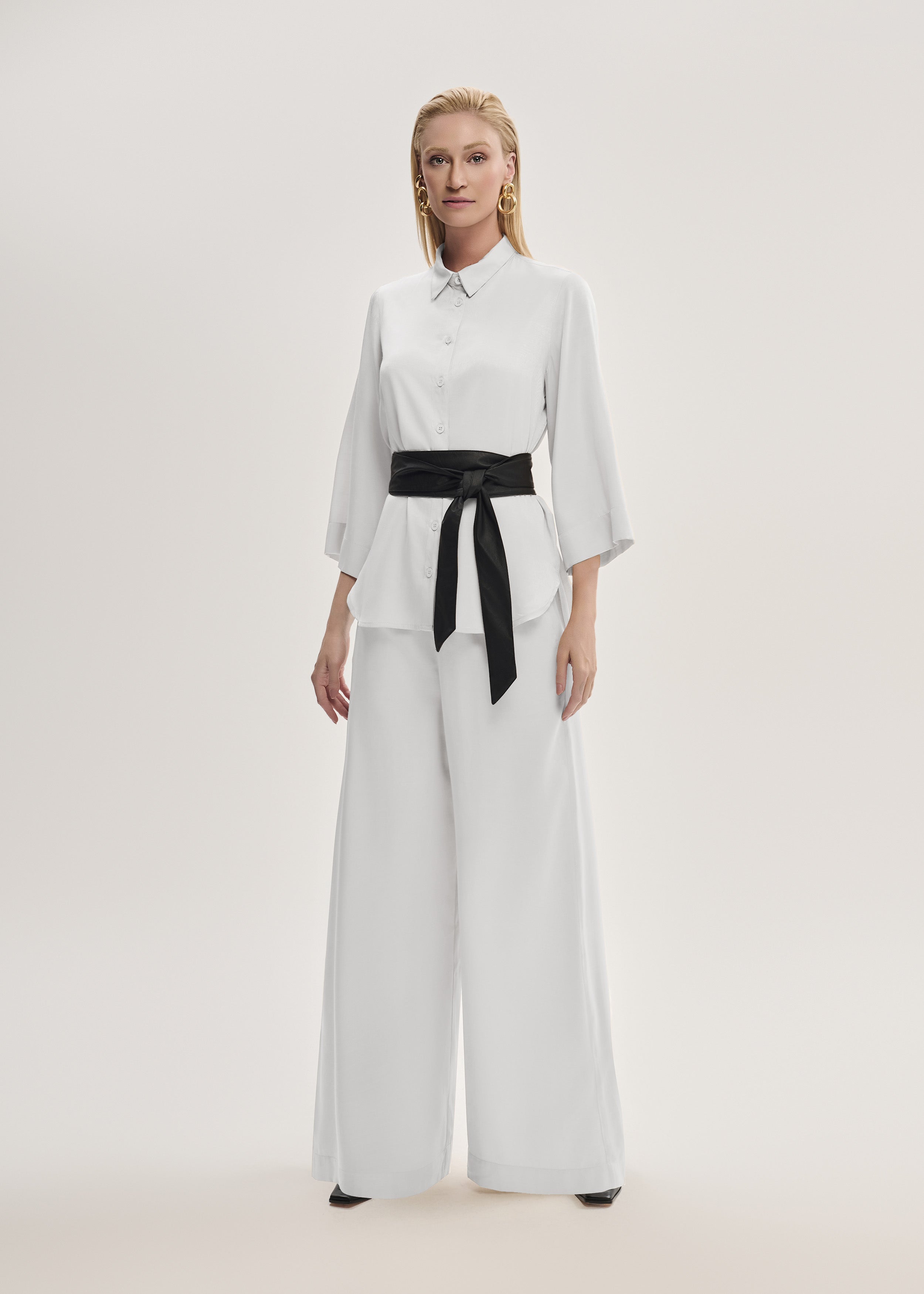 Conjunto Camisa e Calça Pantalona em Silk Satin Off White