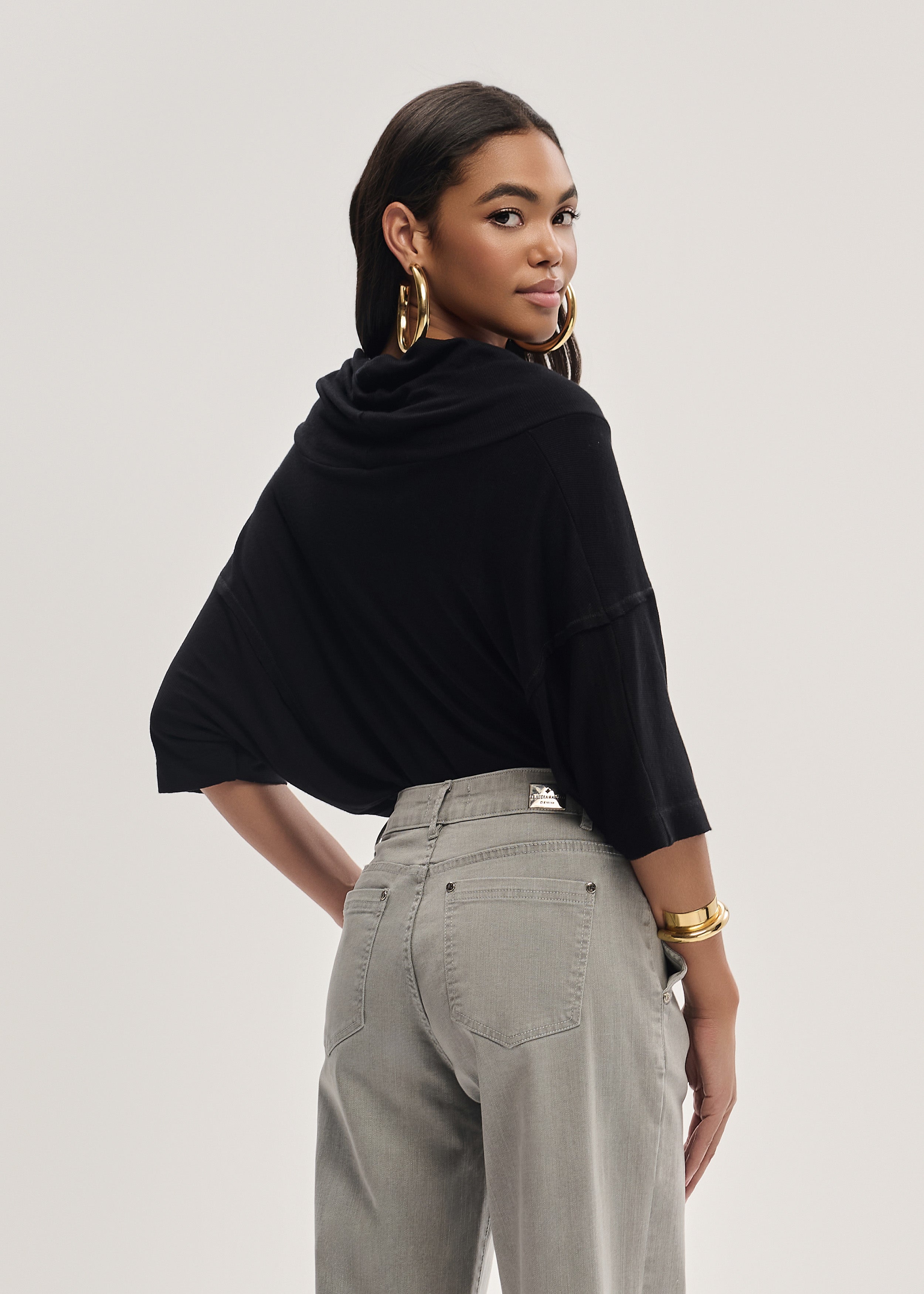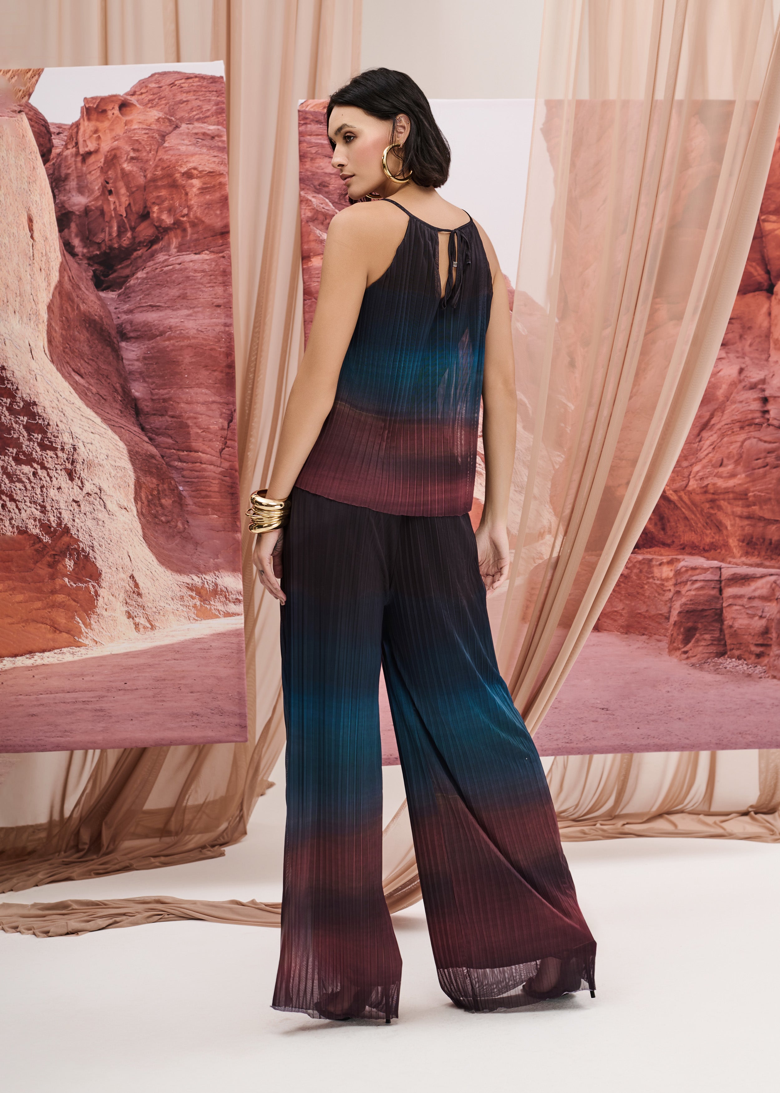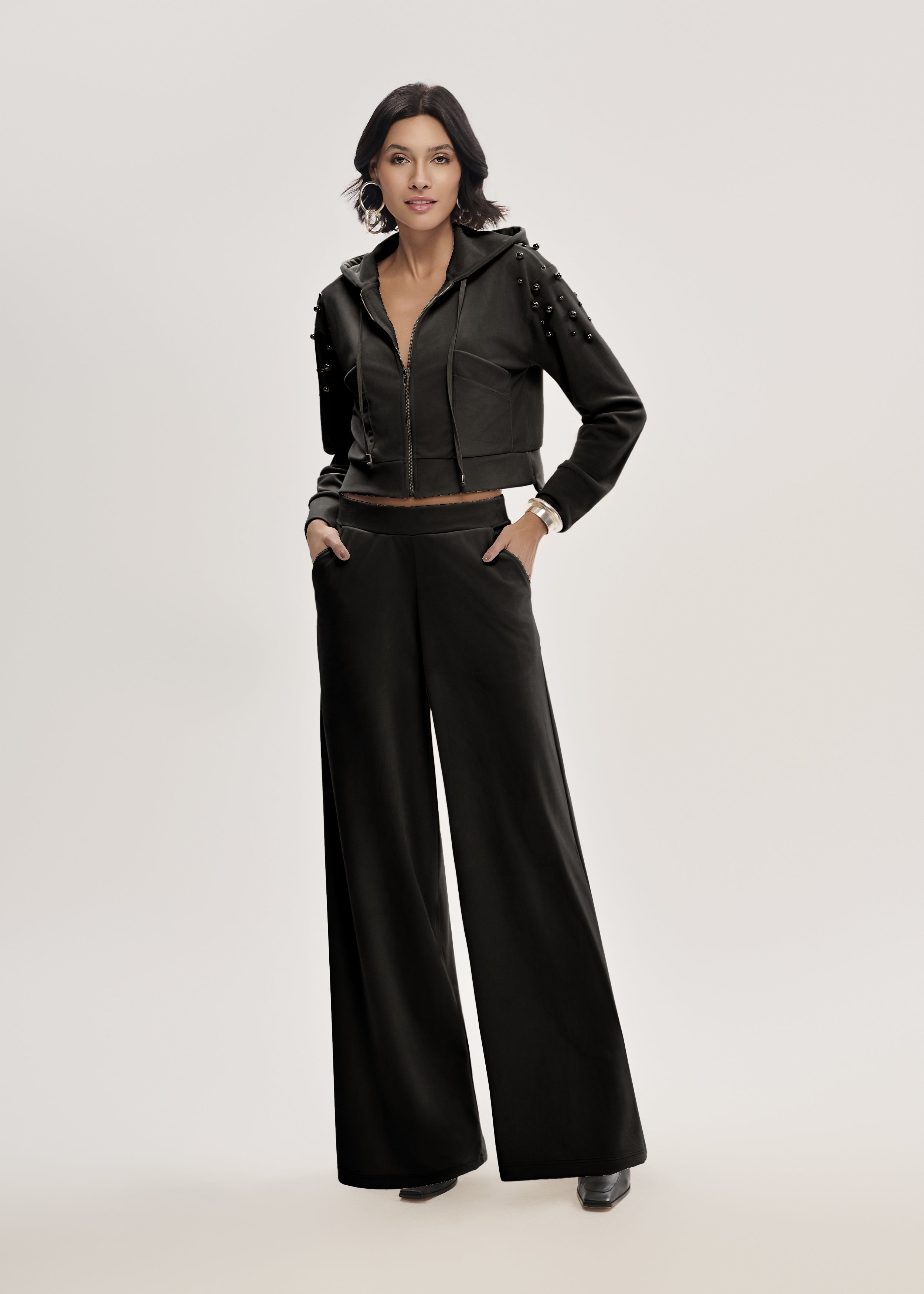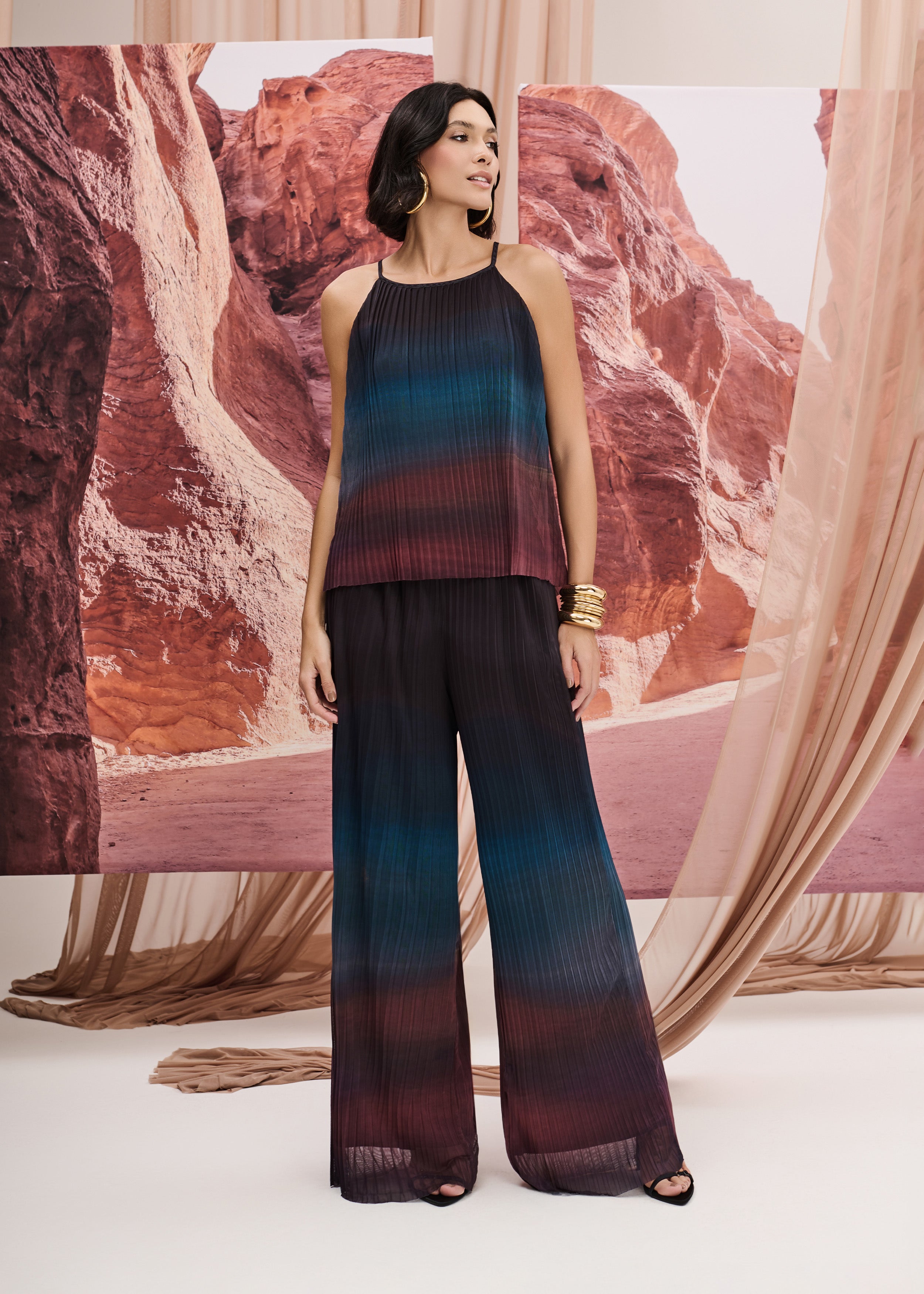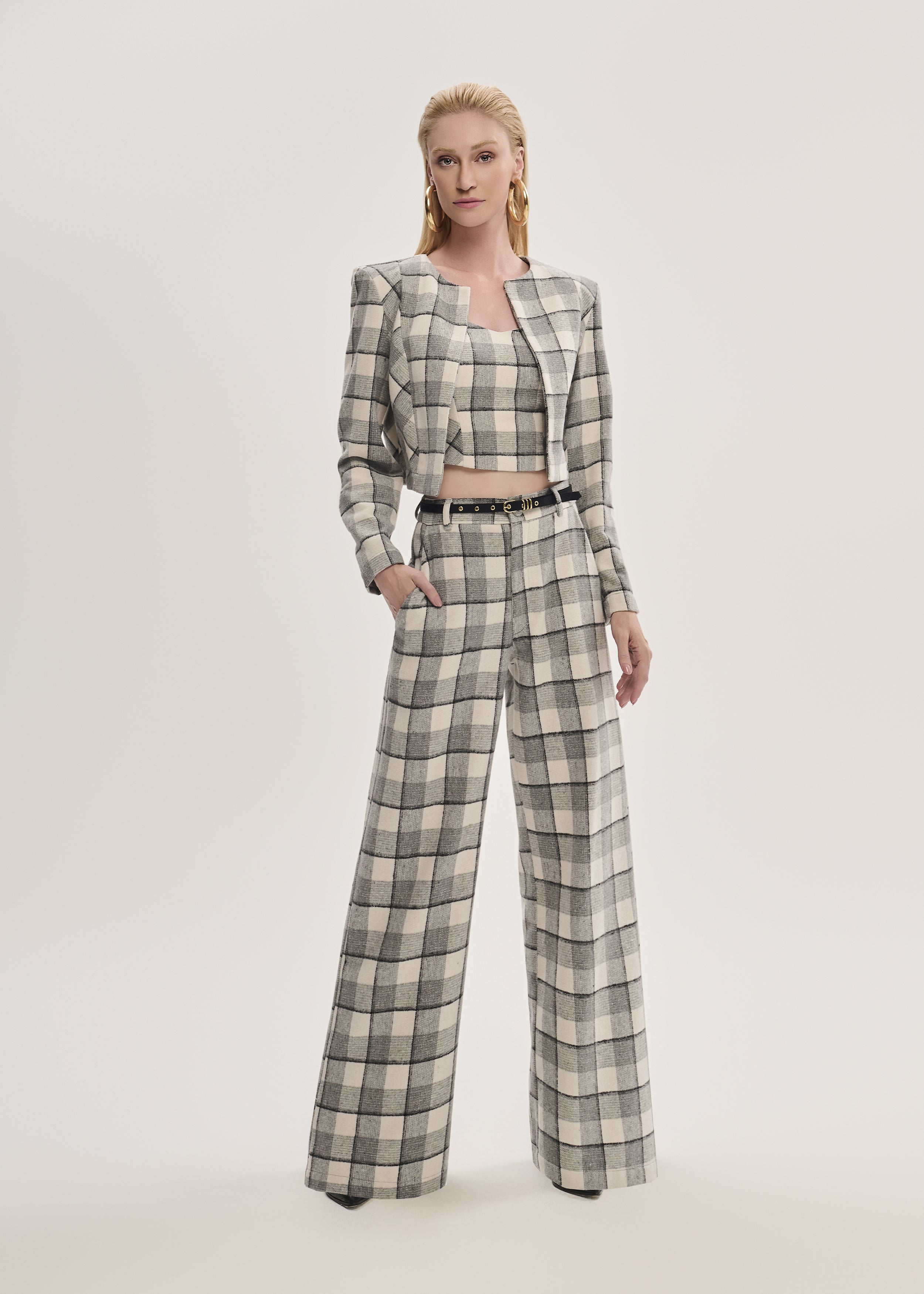 Conjunto Camisa e Calça Pantalona em Silk Satin Off White