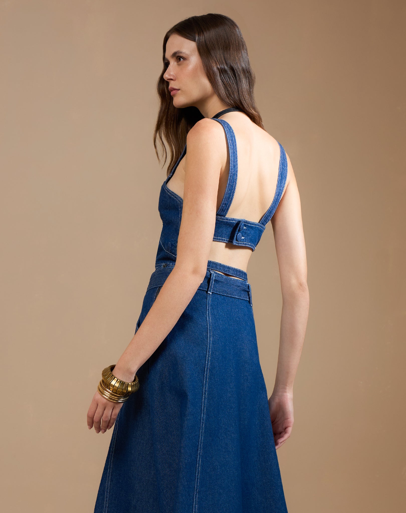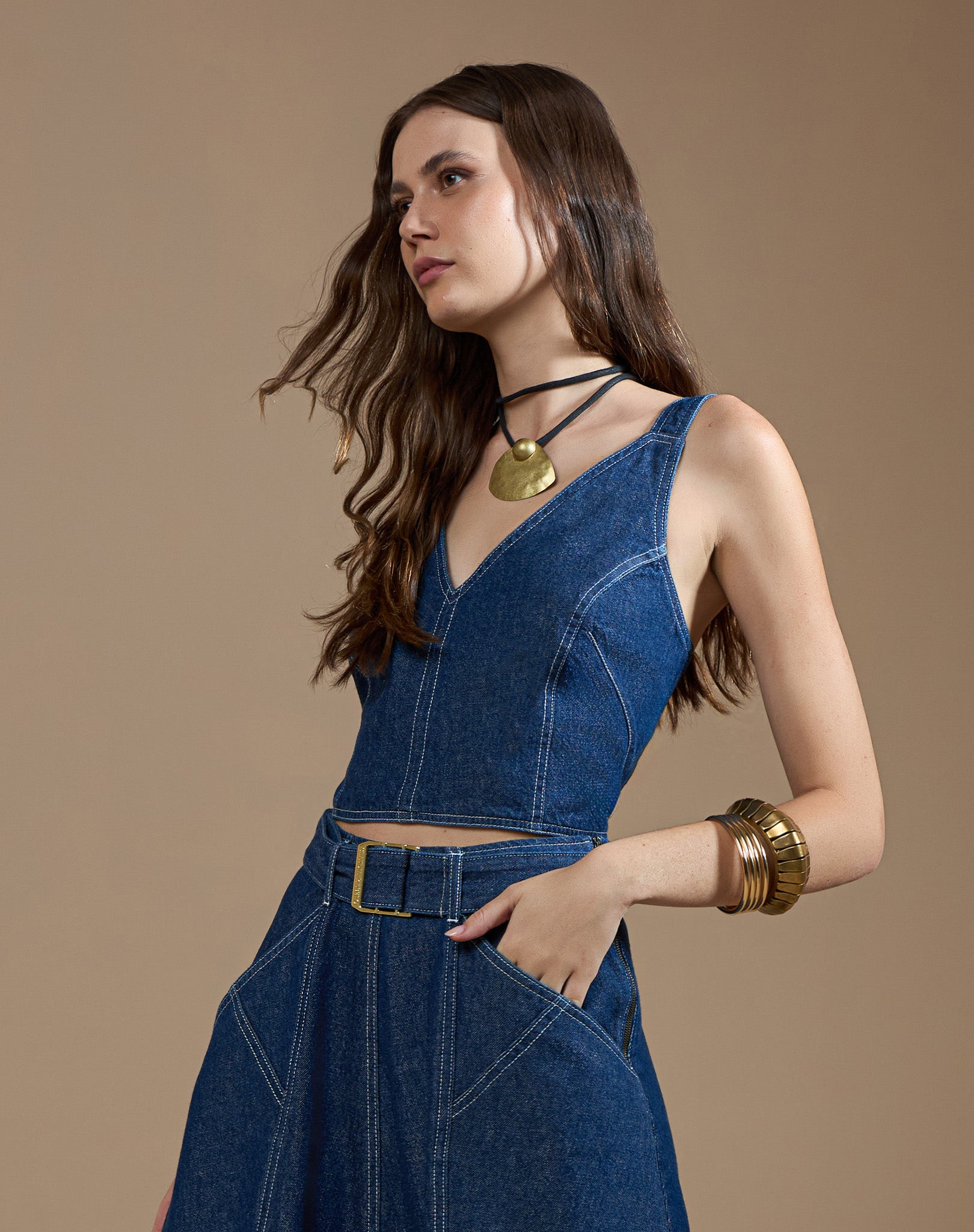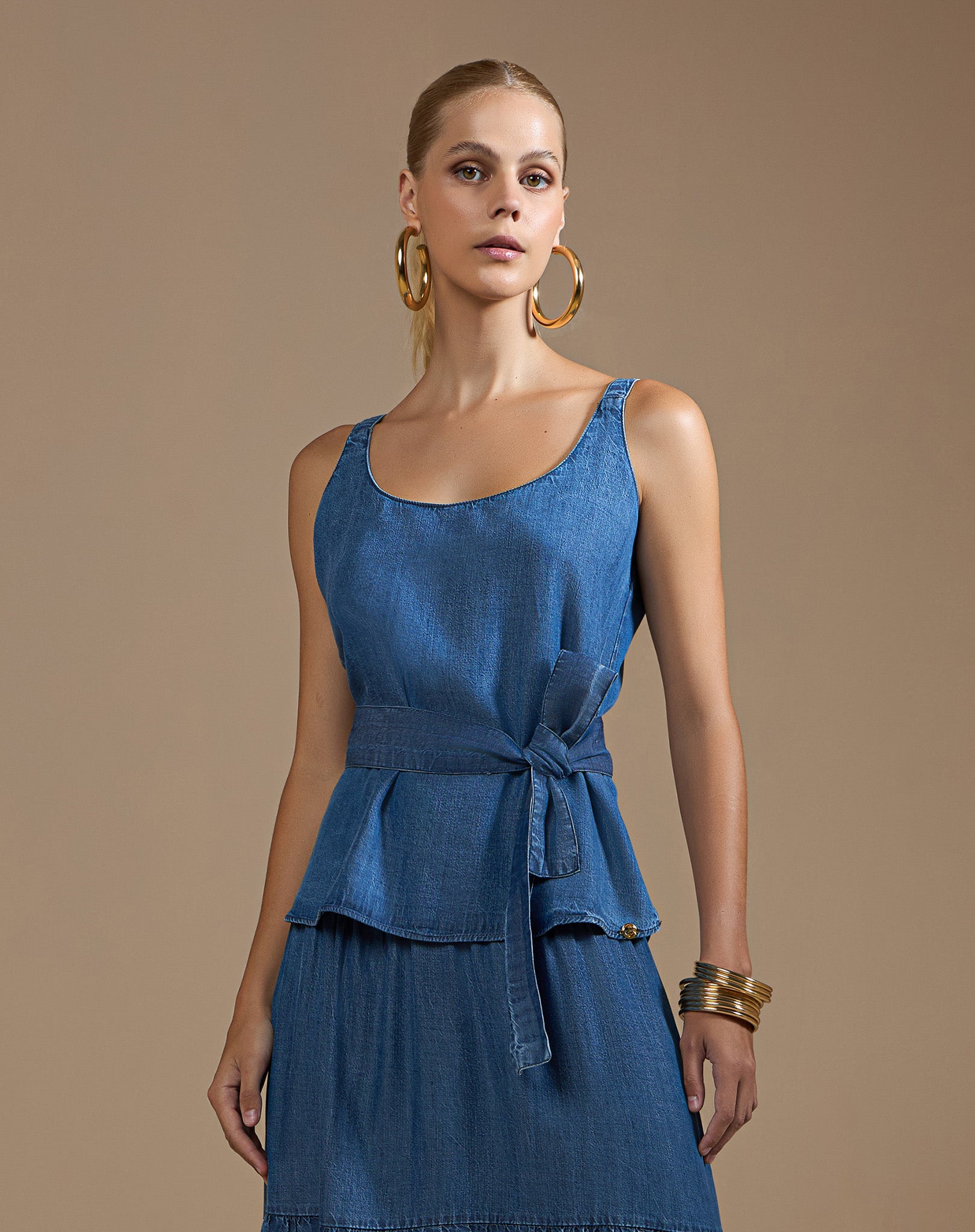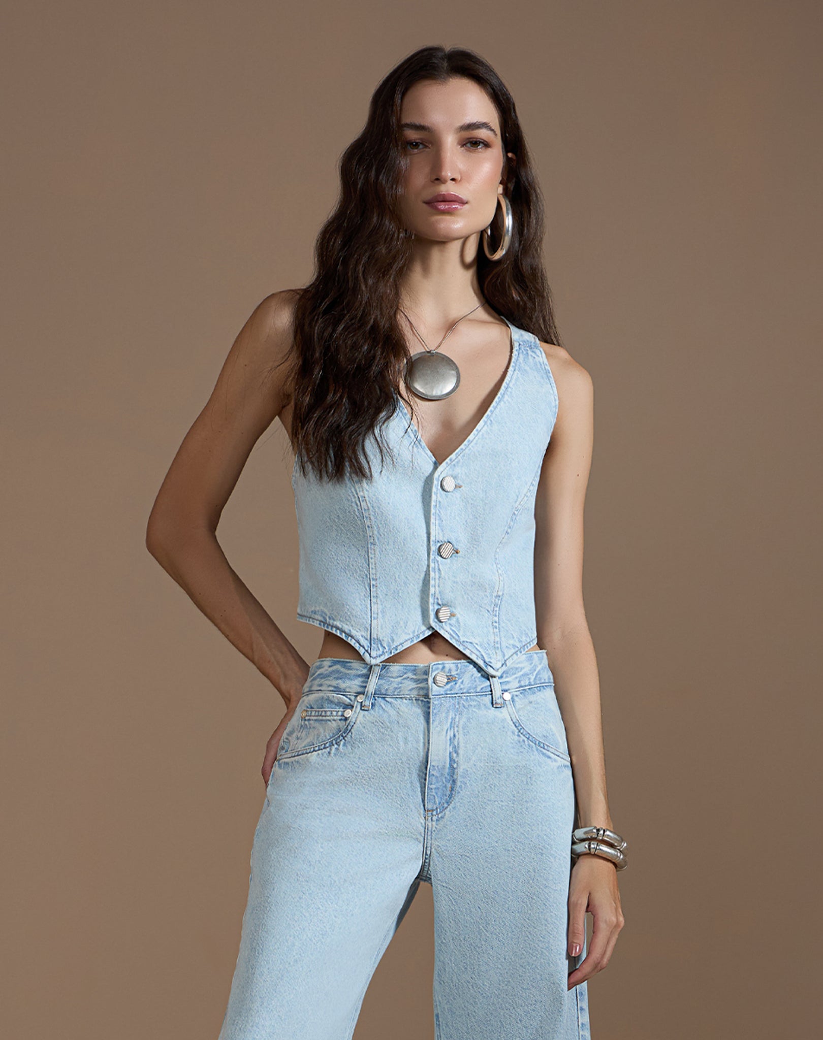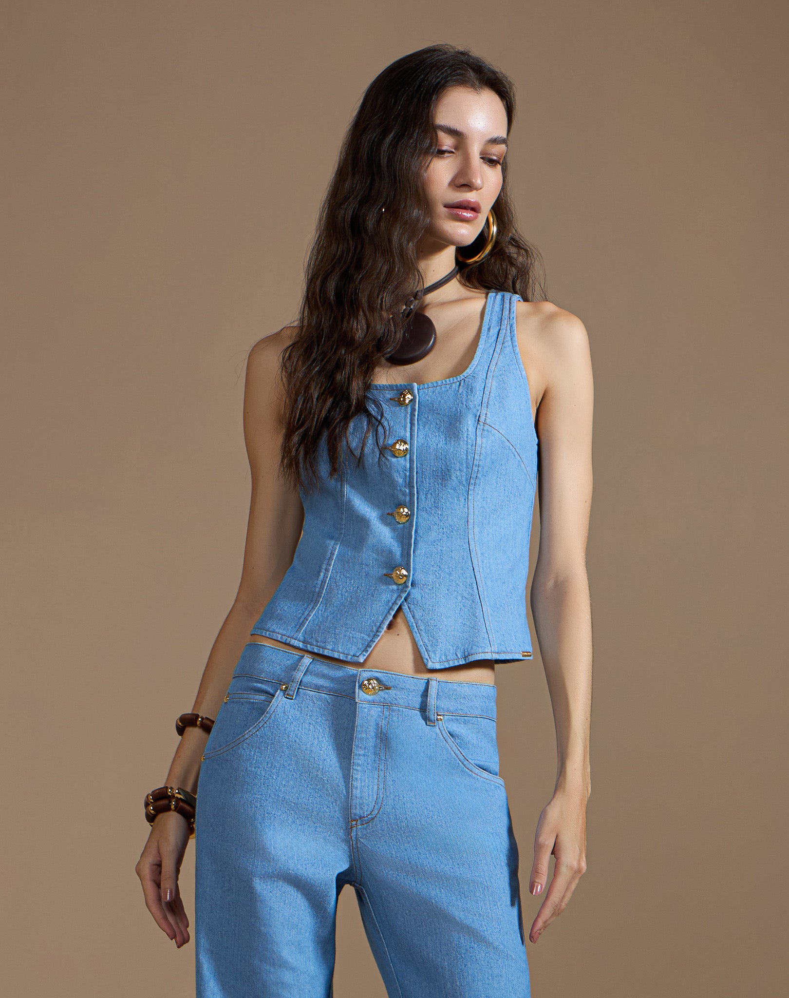 Blusa Jeans Estilo Colete com Regulador nas Costas