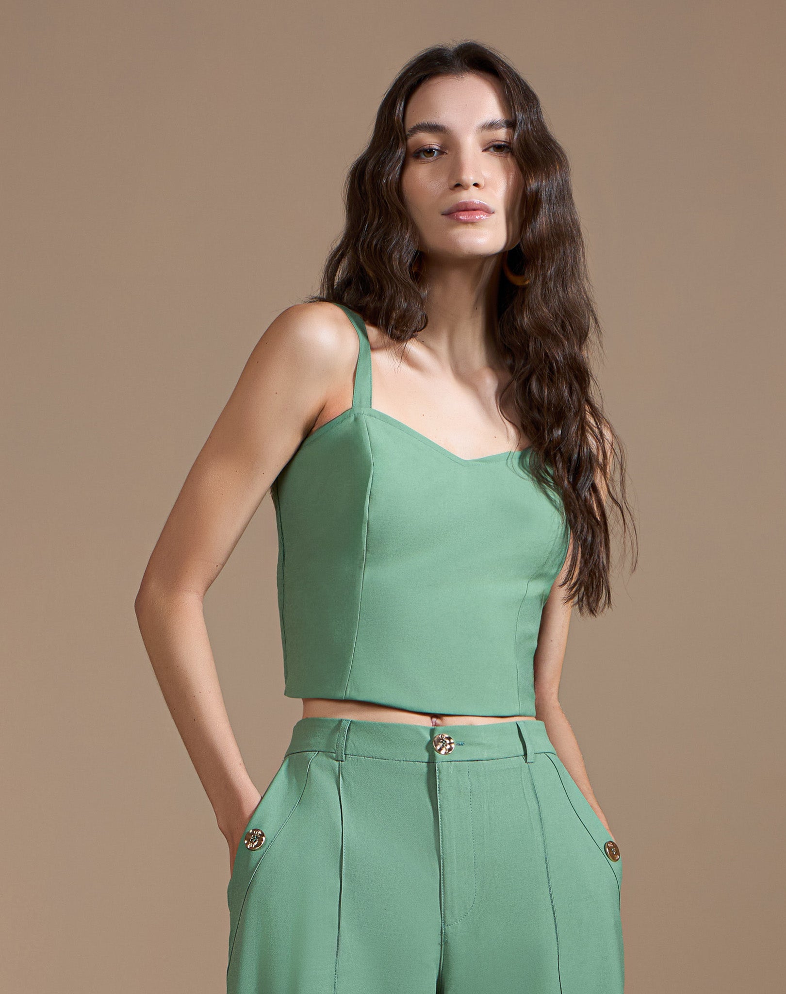 Com visual leve e atual, o top cropped é a escolha ideal para looks frescos e descomplicados. Possui alças finas com regulagem que permitem ajuste perfeito ao corpo, deixando o colo em evidência de forma delicada.