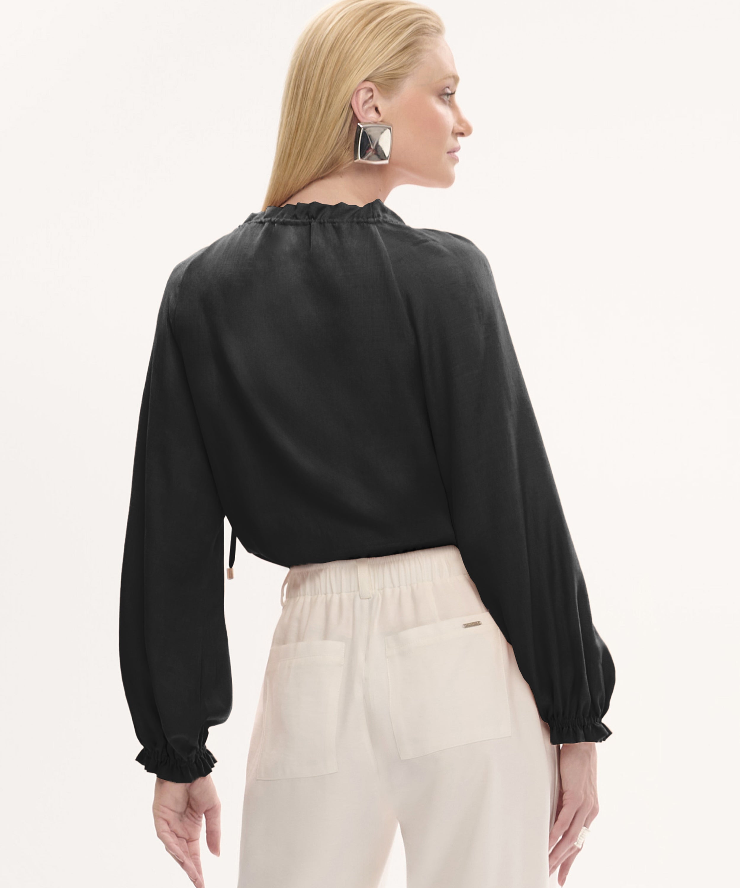 Blusa Essencial Canelada Manga Longa Preta