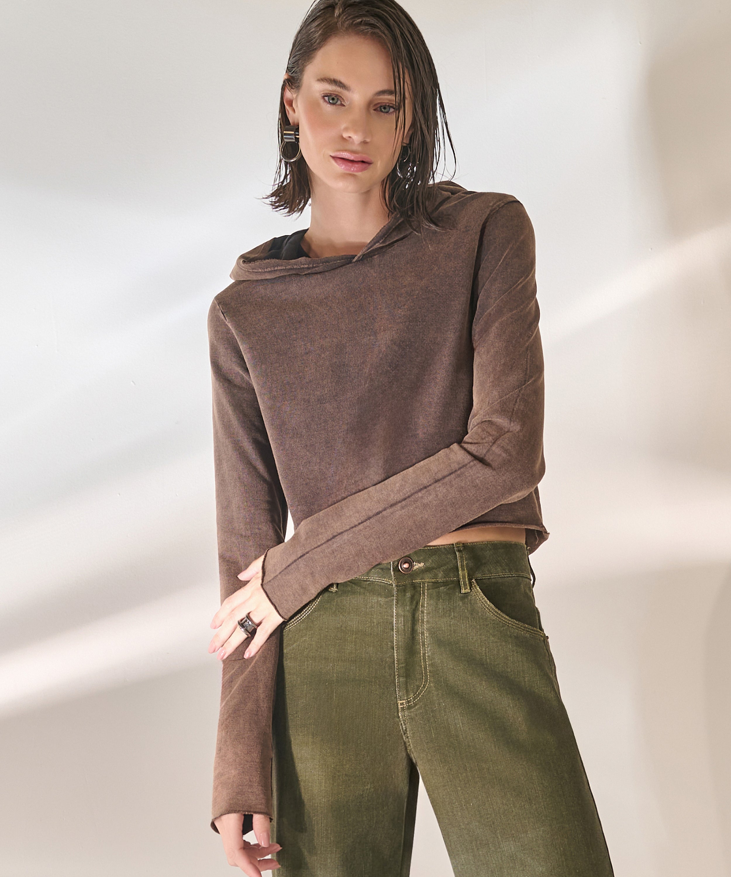 Blusa Cropped em Moletom Washed