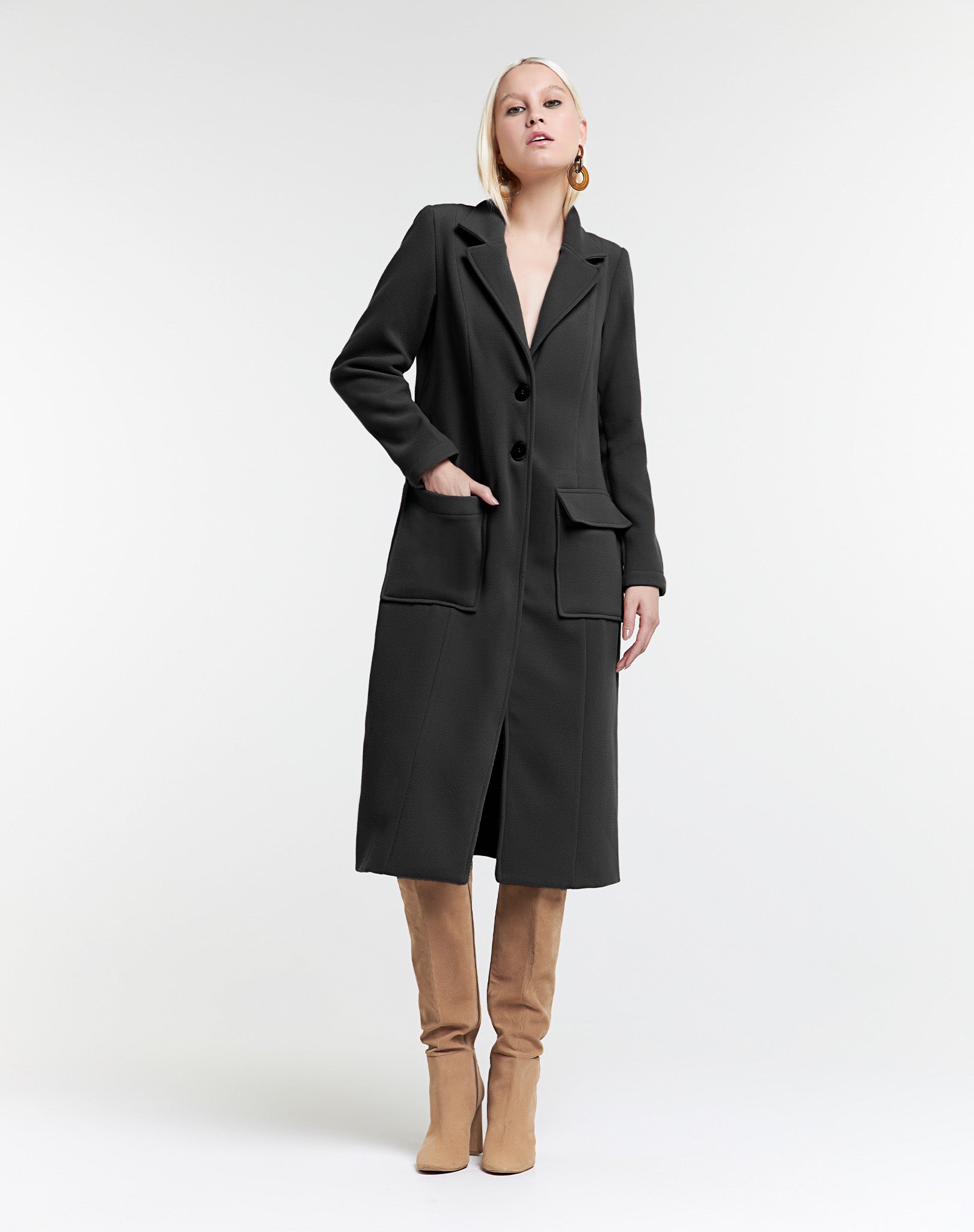 O casaco alongado tipo sobretudo é a peça essencial para compor looks sofisticados no inverno. Com comprimento médio a longo, possui modelagem clássica, fechamento frontal por dois botões e bolsos aplicados que aliam funcionalidade e charme. A manga longa garante conforto térmico, enquanto o corte reto e elegante permite sobreposições com camisas, tricôs ou vestidos. Atemporal e versátil, transita facilmente entre o ambiente de trabalho, compromissos formais ou um passeio nos dias frios. Use com botas, mocassins ou sapatos de salto para finalizar o visual com personalidade.