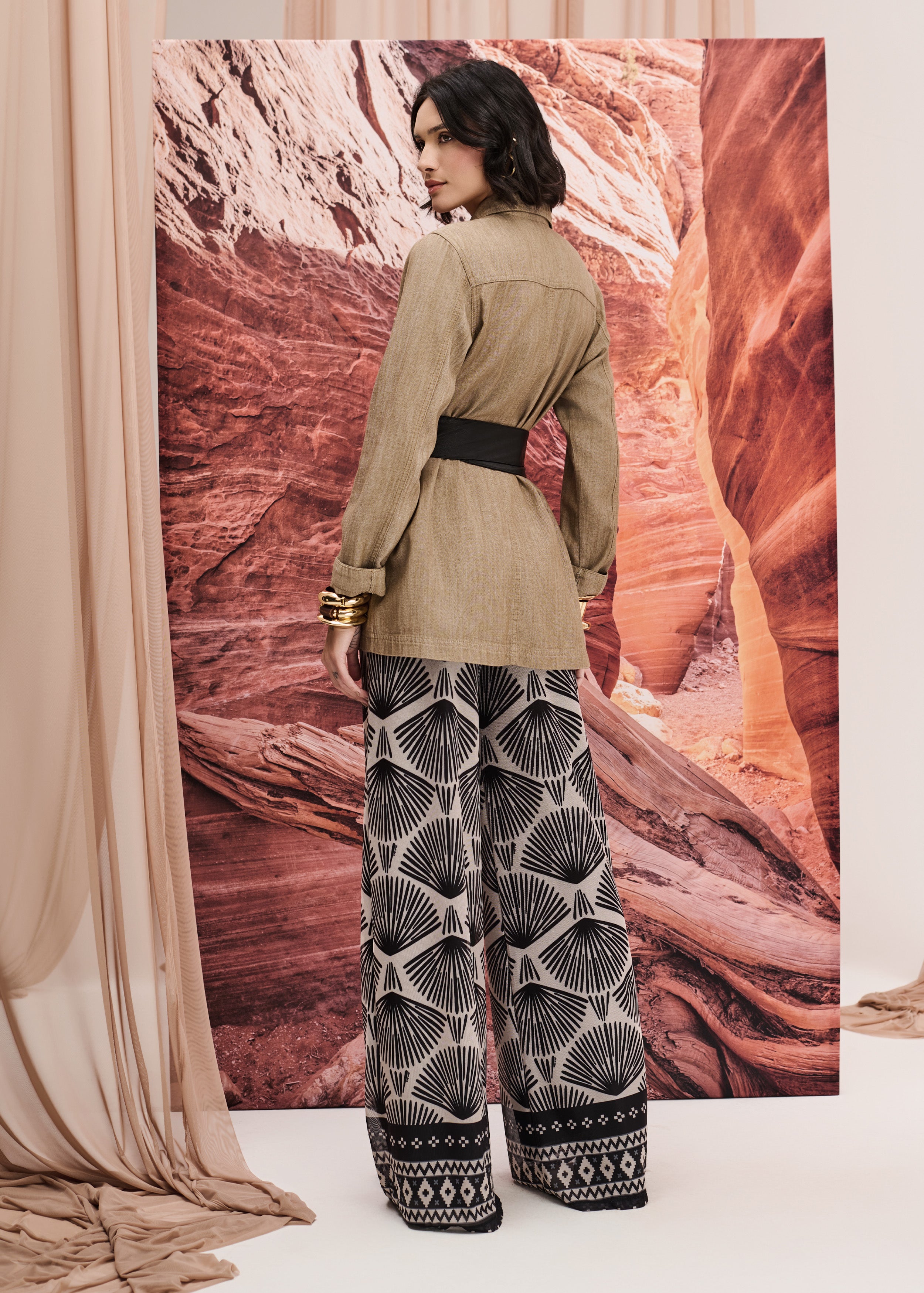 A parka utilitária é um item indispensável para quem busca estilo e funcionalidade em uma única peça. Com uma modelagem estruturada, ela traz quatro bolsos frontais estratégicos – dois superiores com lapela e dois inferiores sem – que reforçam sua estética utilitária sem comprometer a leveza da peça. O fechamento por botões de pressão em metais dourados adiciona um toque de sofisticação, enquanto a faixa avulsa permite ajustar a cintura, criando diferentes possibilidades de uso.