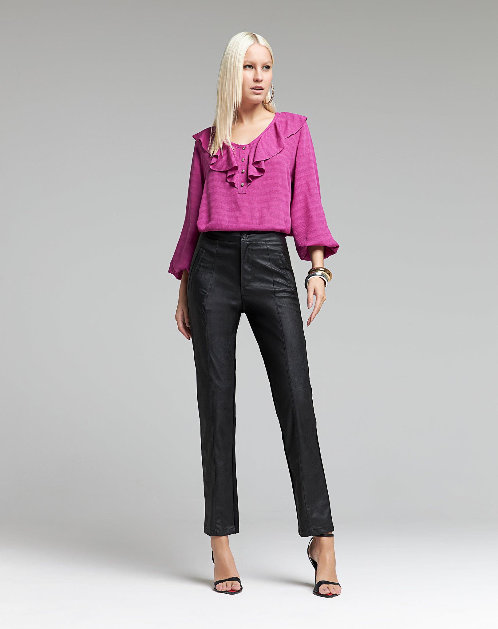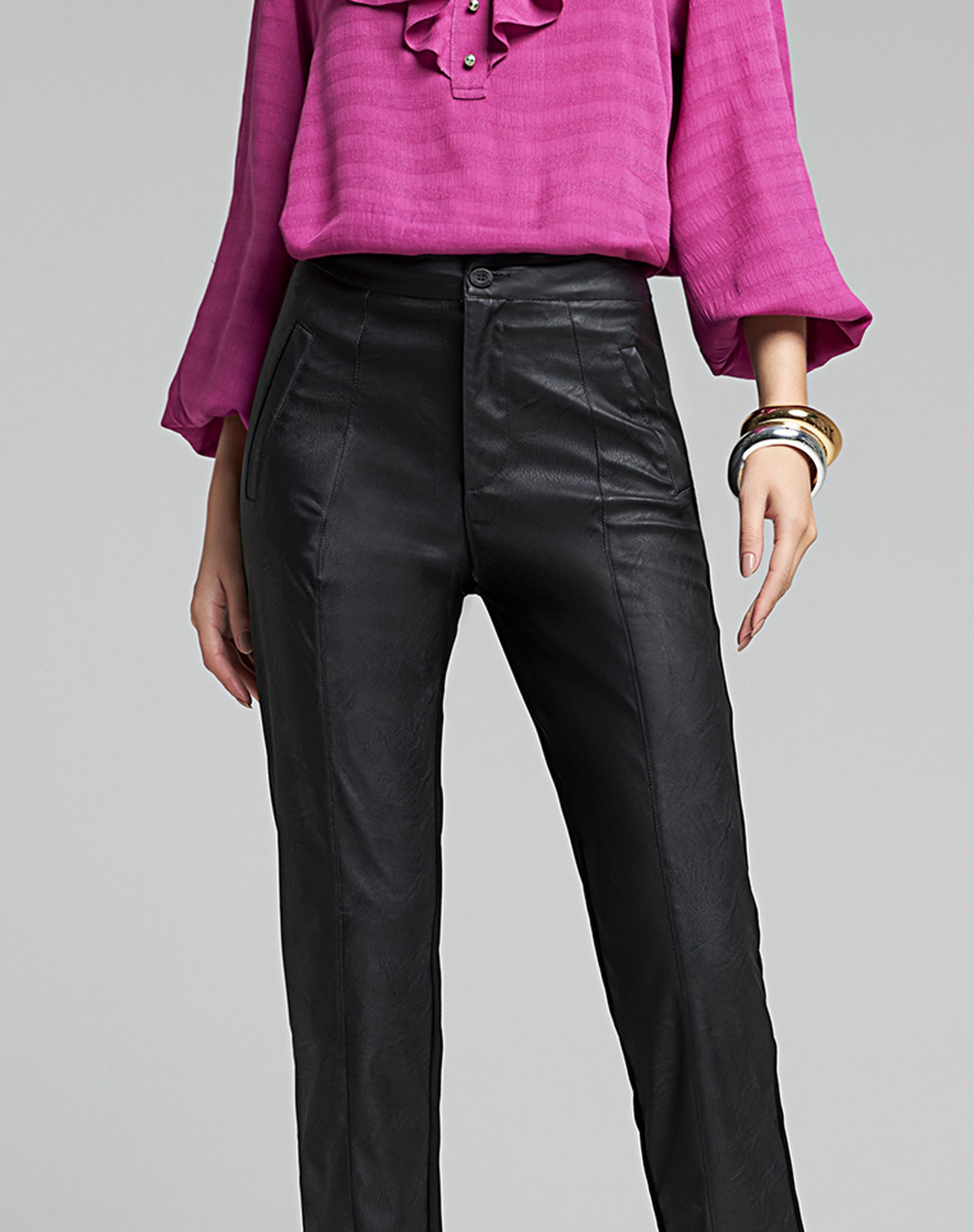 Calça Reta em PU com Toque Alfaiataria