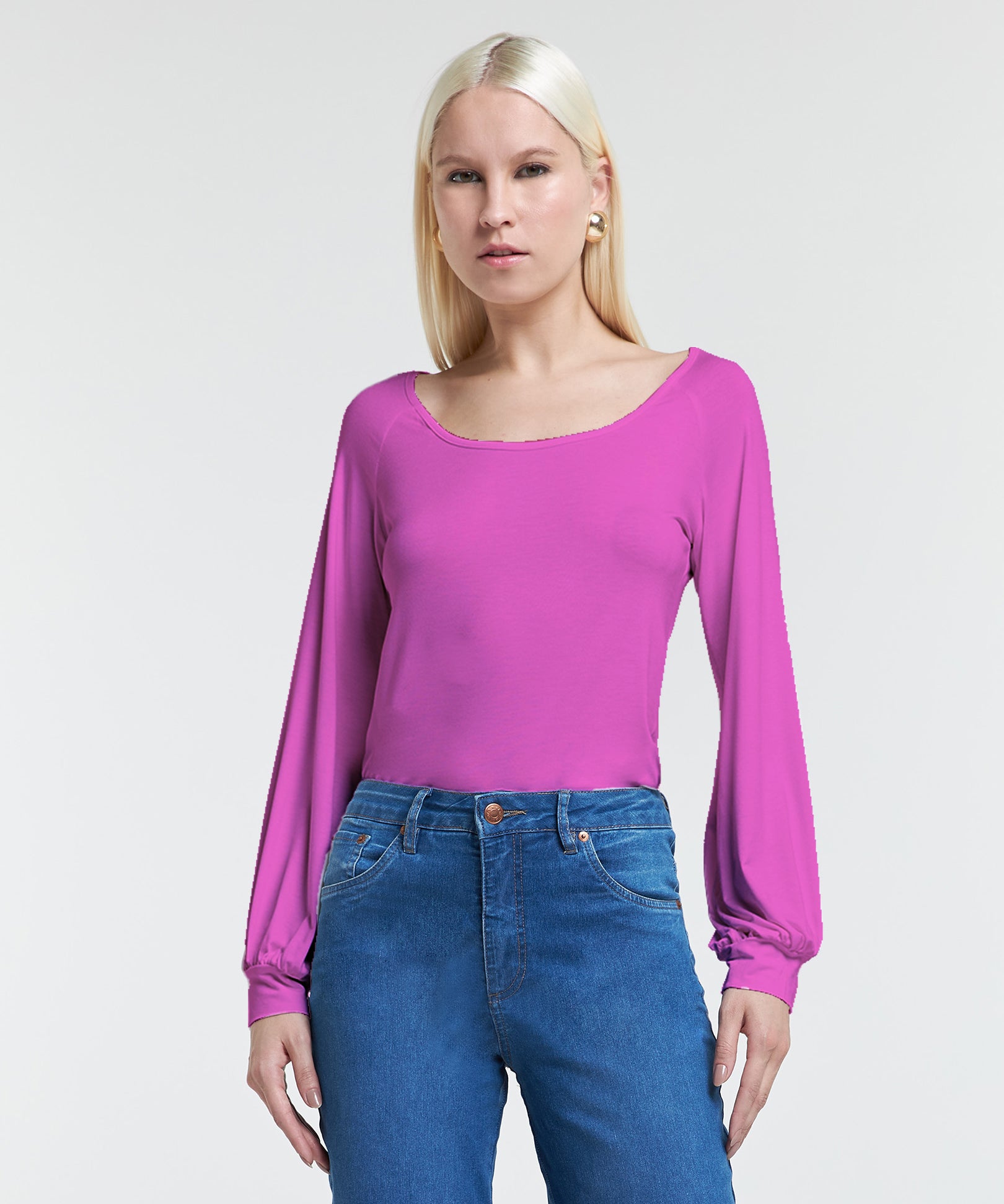 Blusa Malha Manga Longa com Gola Canoa