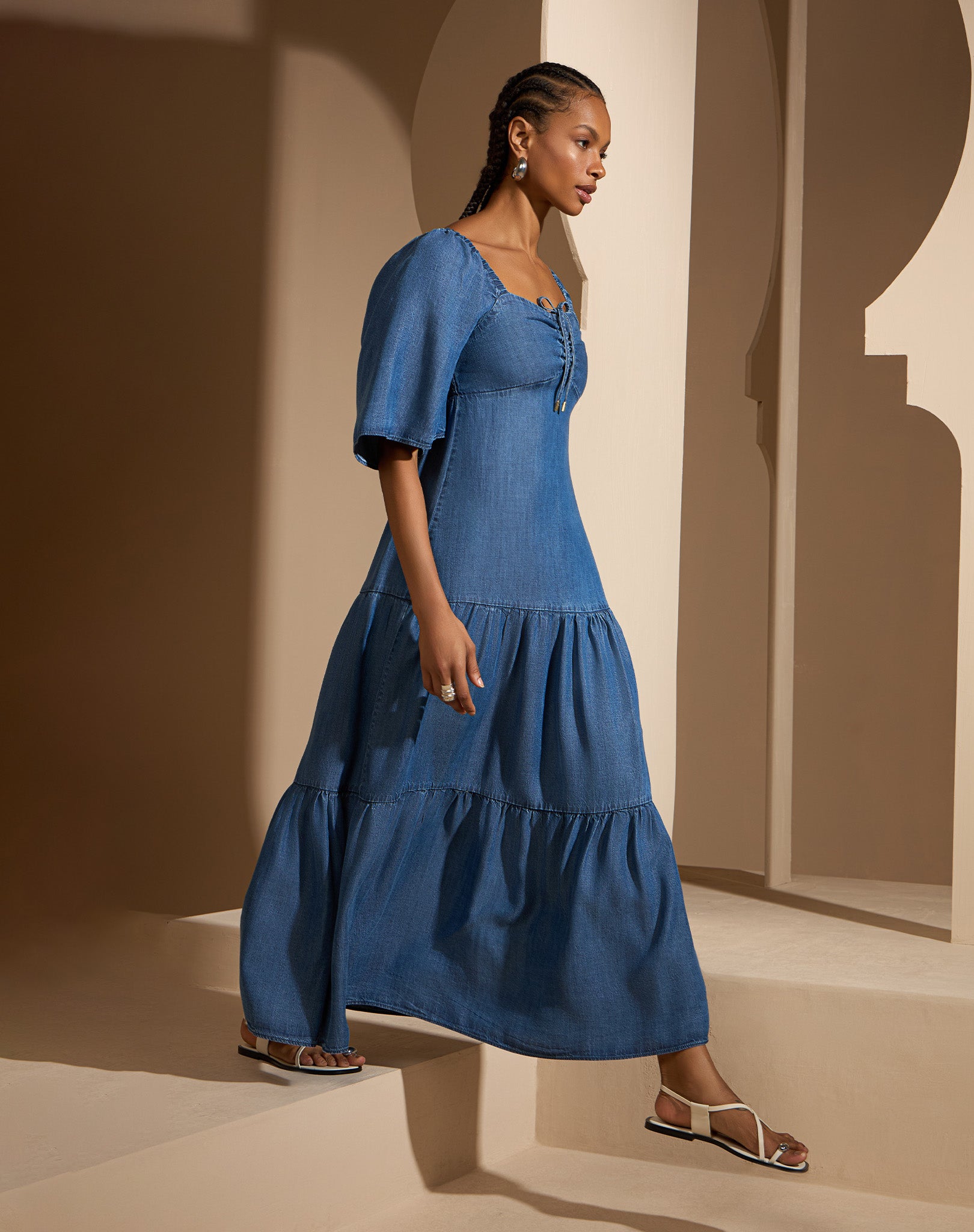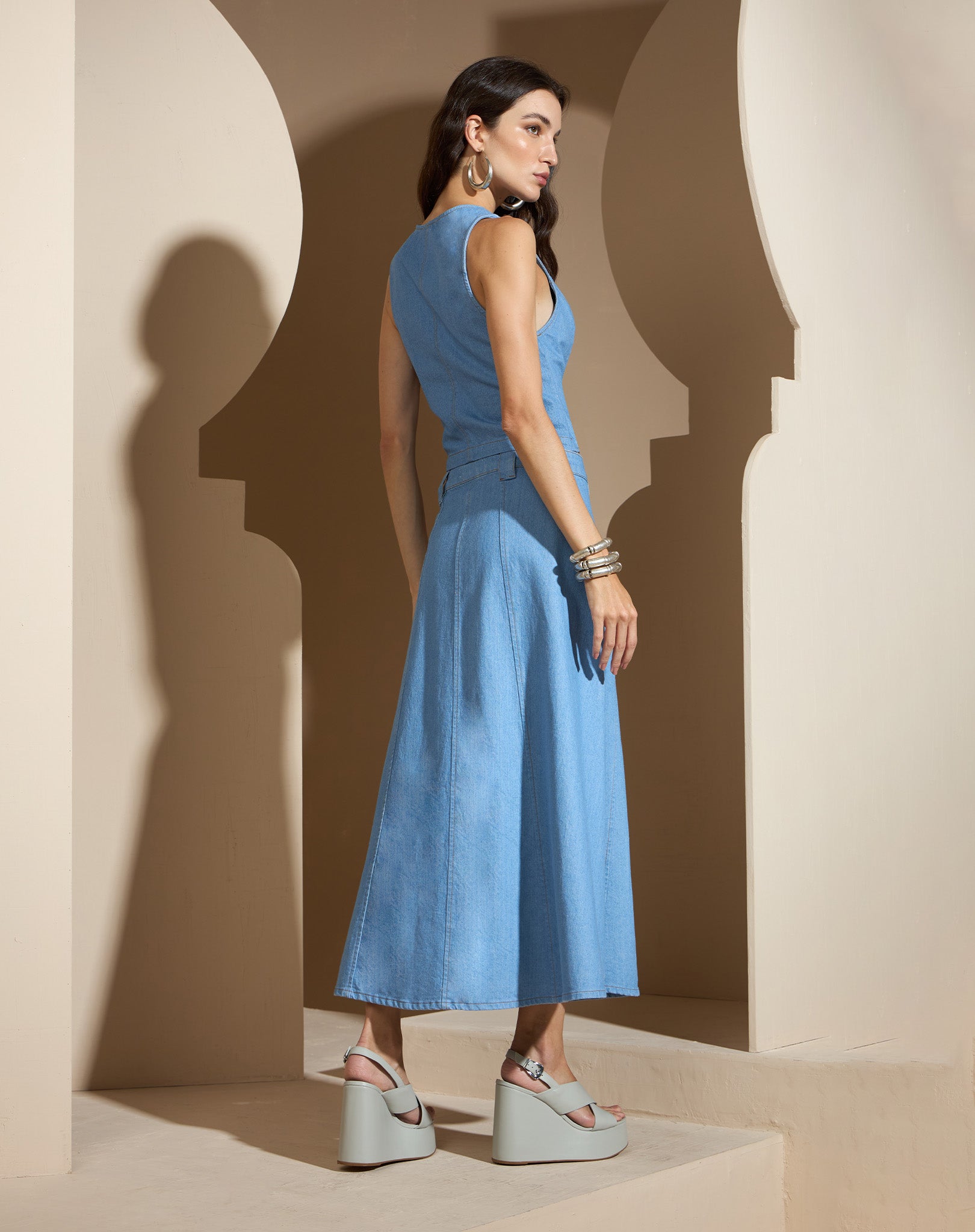 Blusa Jeans Estilo Colete com Regulador nas Costas
