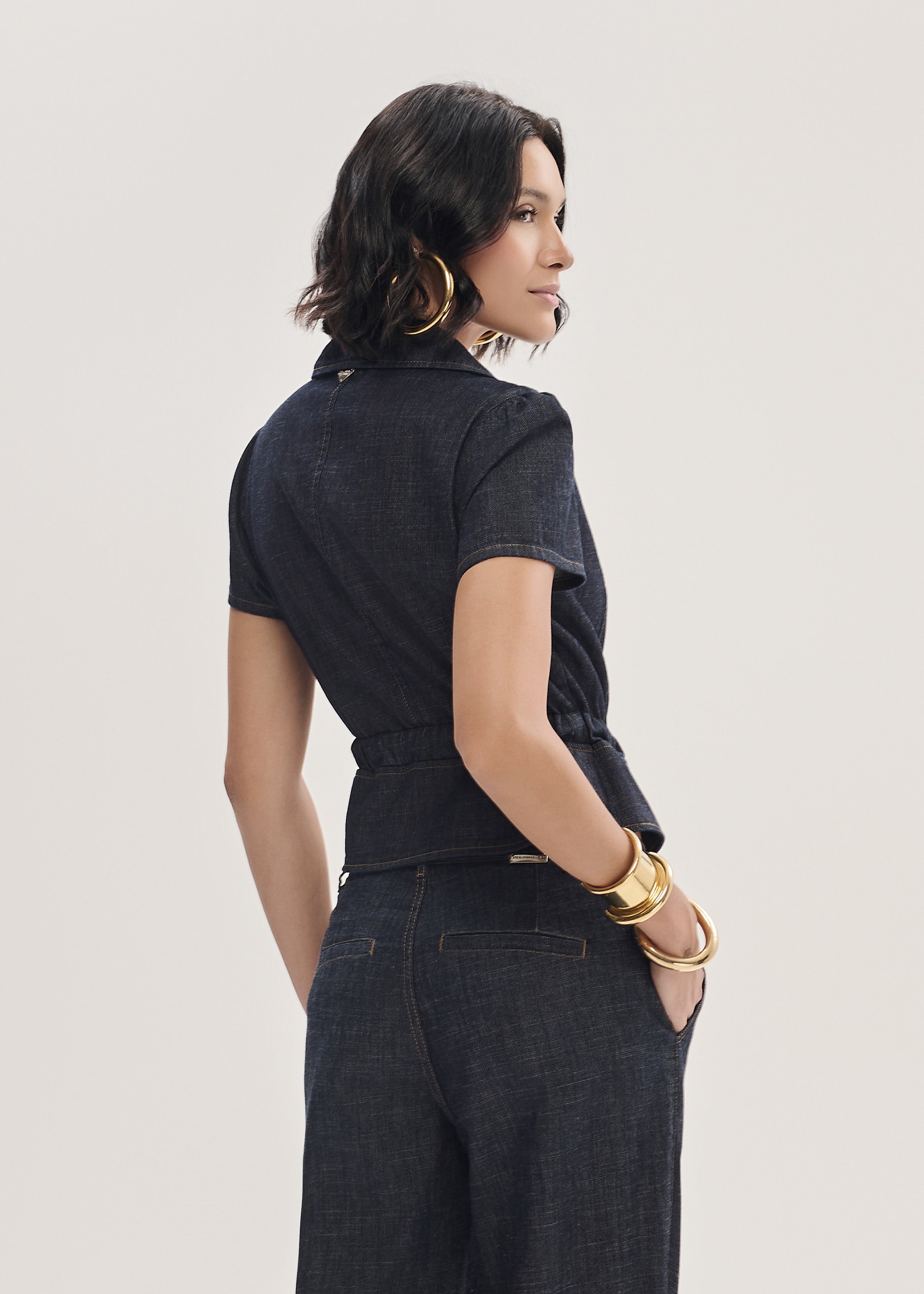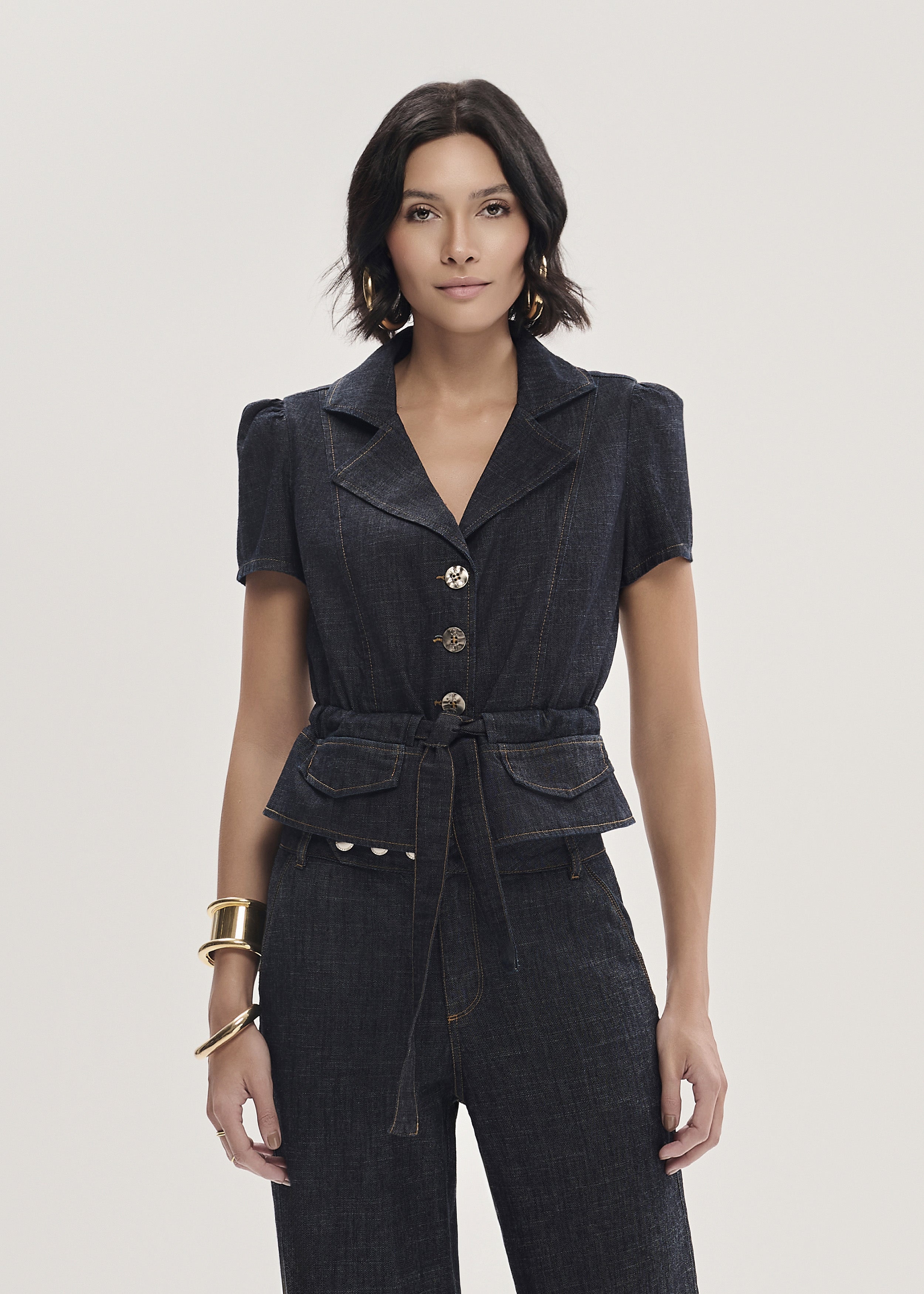 Jaqueta Jeans Manga Curta com Faixa