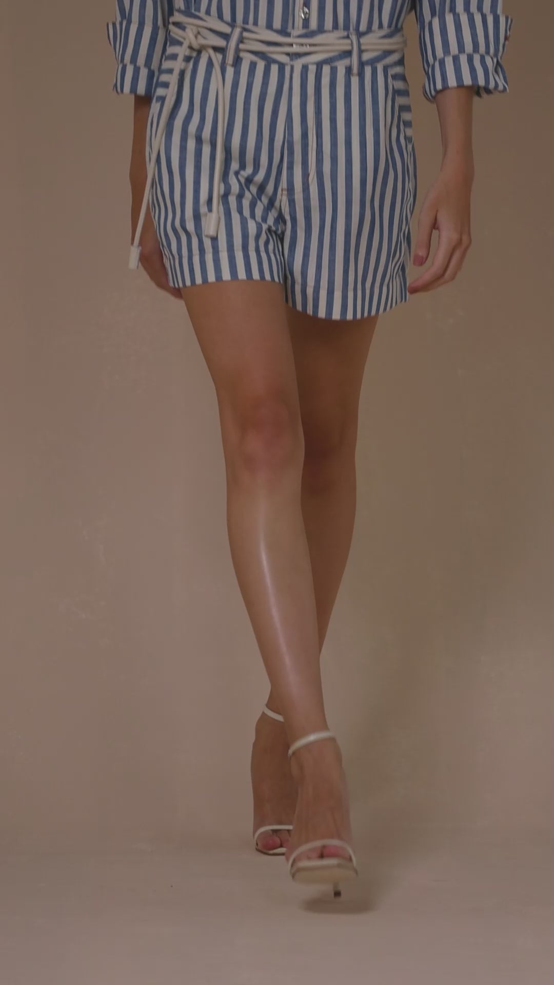 Fresco, versátil e cheio de charme, este short 100% algodão traduz o espírito leve do verão com seu padrão listrado no estilo náutico. Os bolsos frontais e traseiros trazem praticidade, enquanto o detalhe da costura em tom chocolate cria um contraste elegante e moderno.