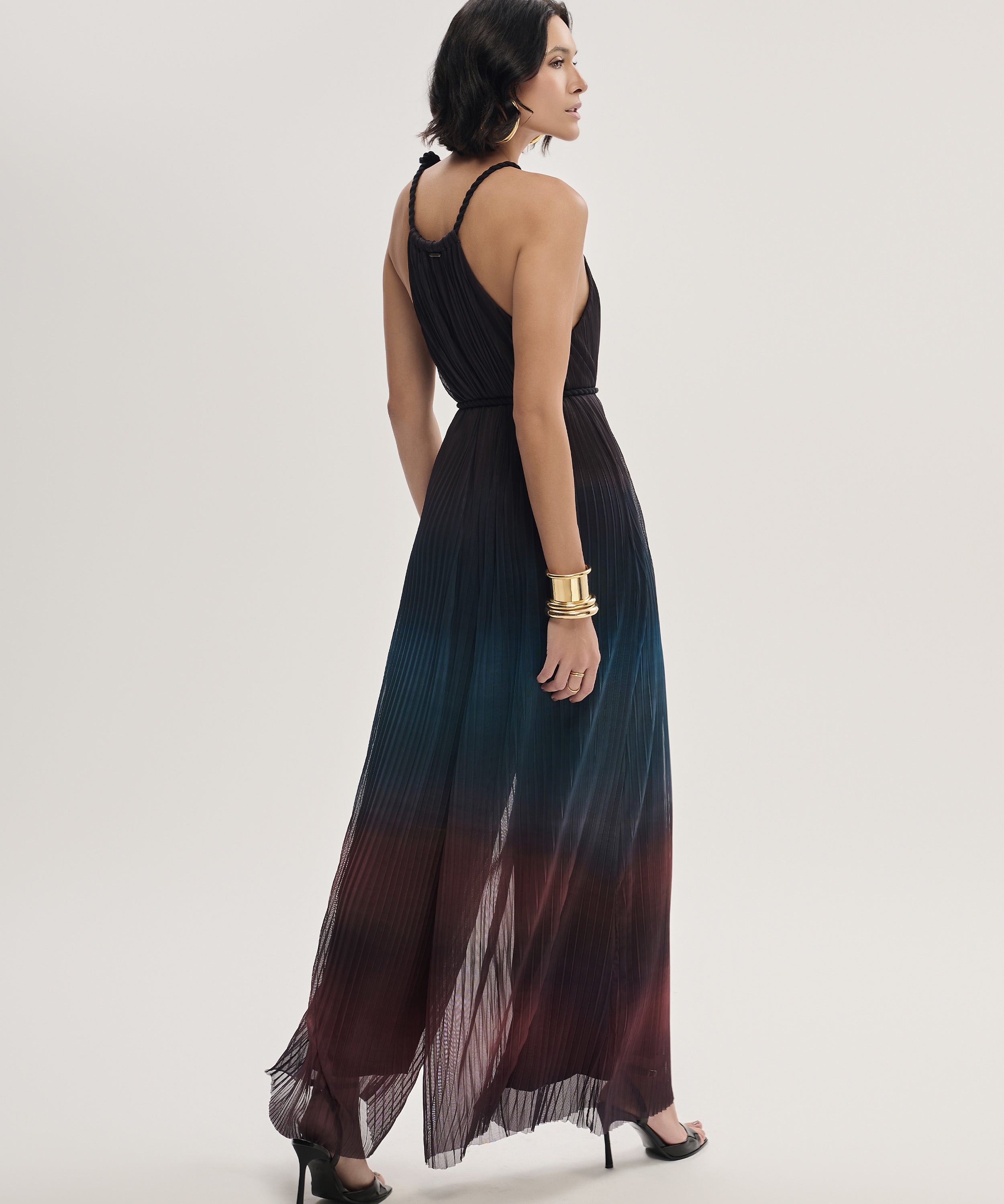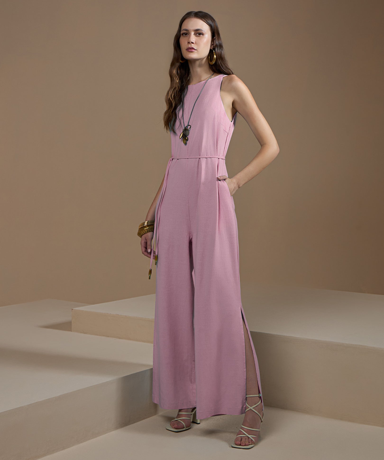 Macacão Sem Alças Pantalona com Fendas e Cordão Rolotê