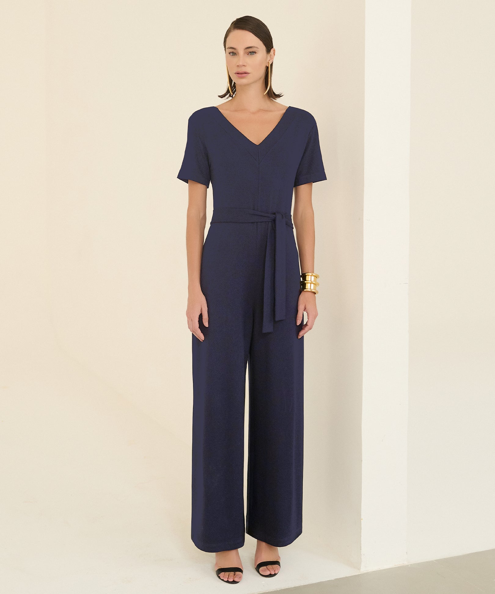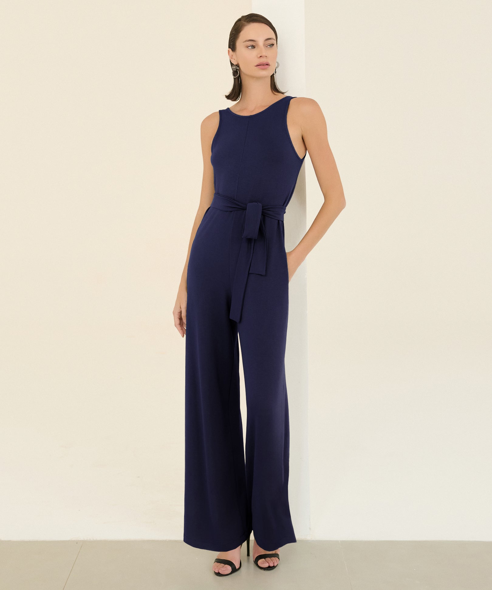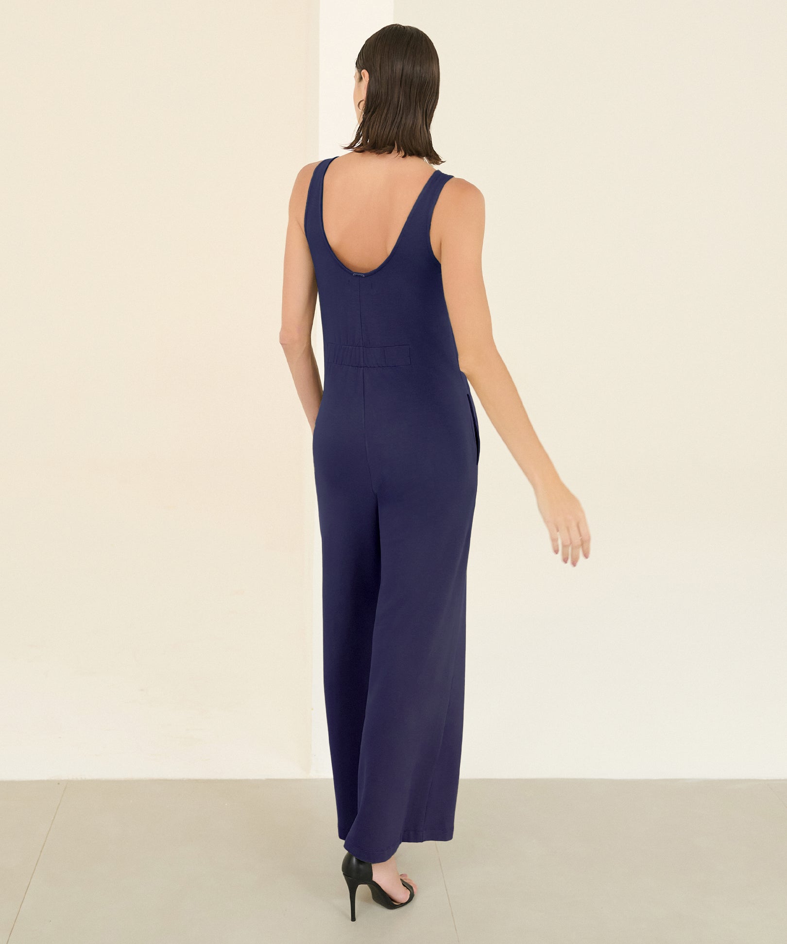 Macacão Essencial Pantalona Sem Mangas Marinho