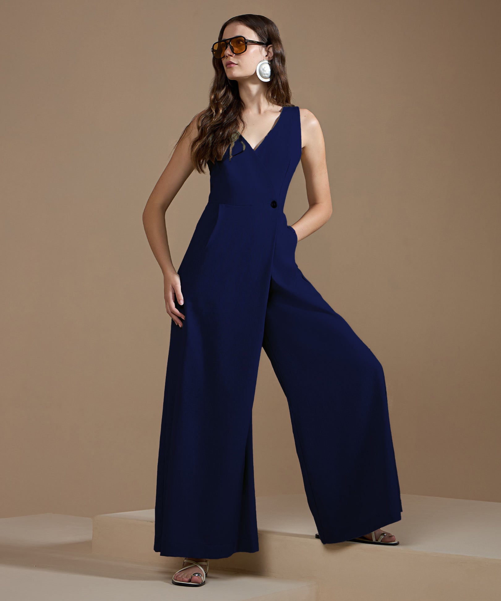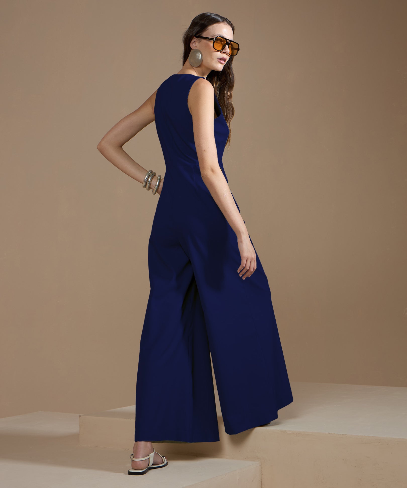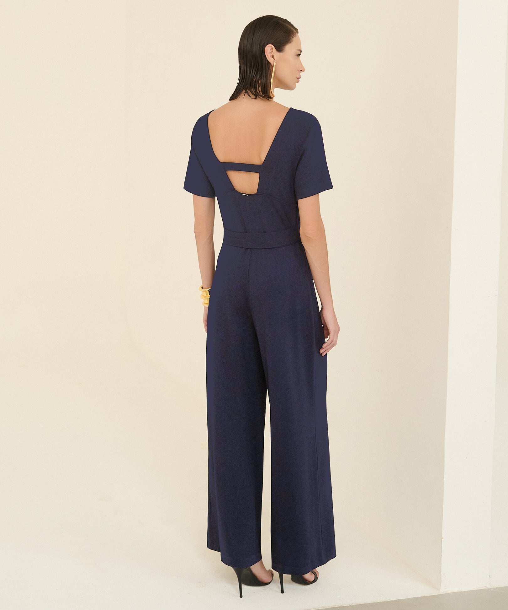 Macacão Essencial Pantalona Sem Mangas Marinho
