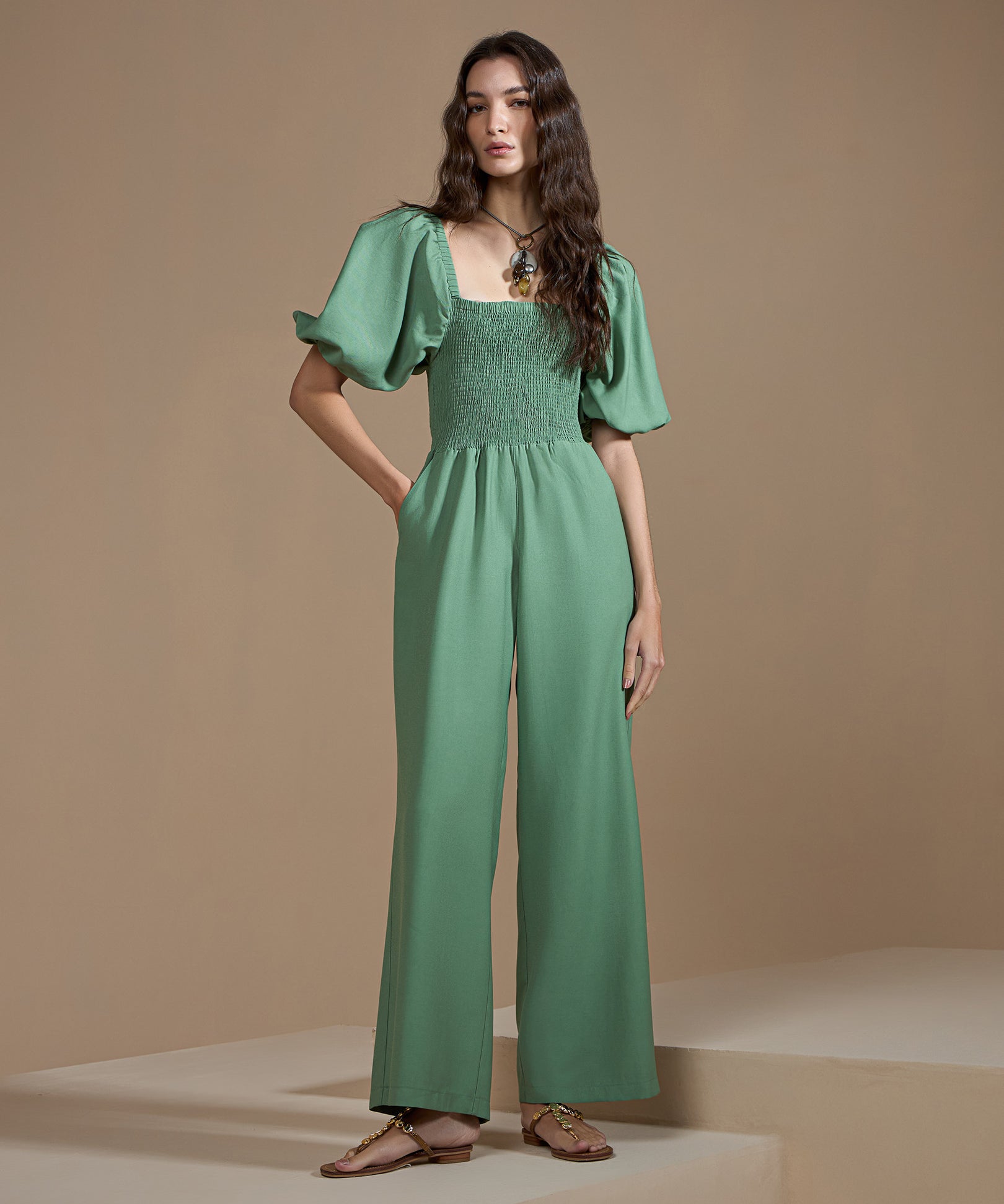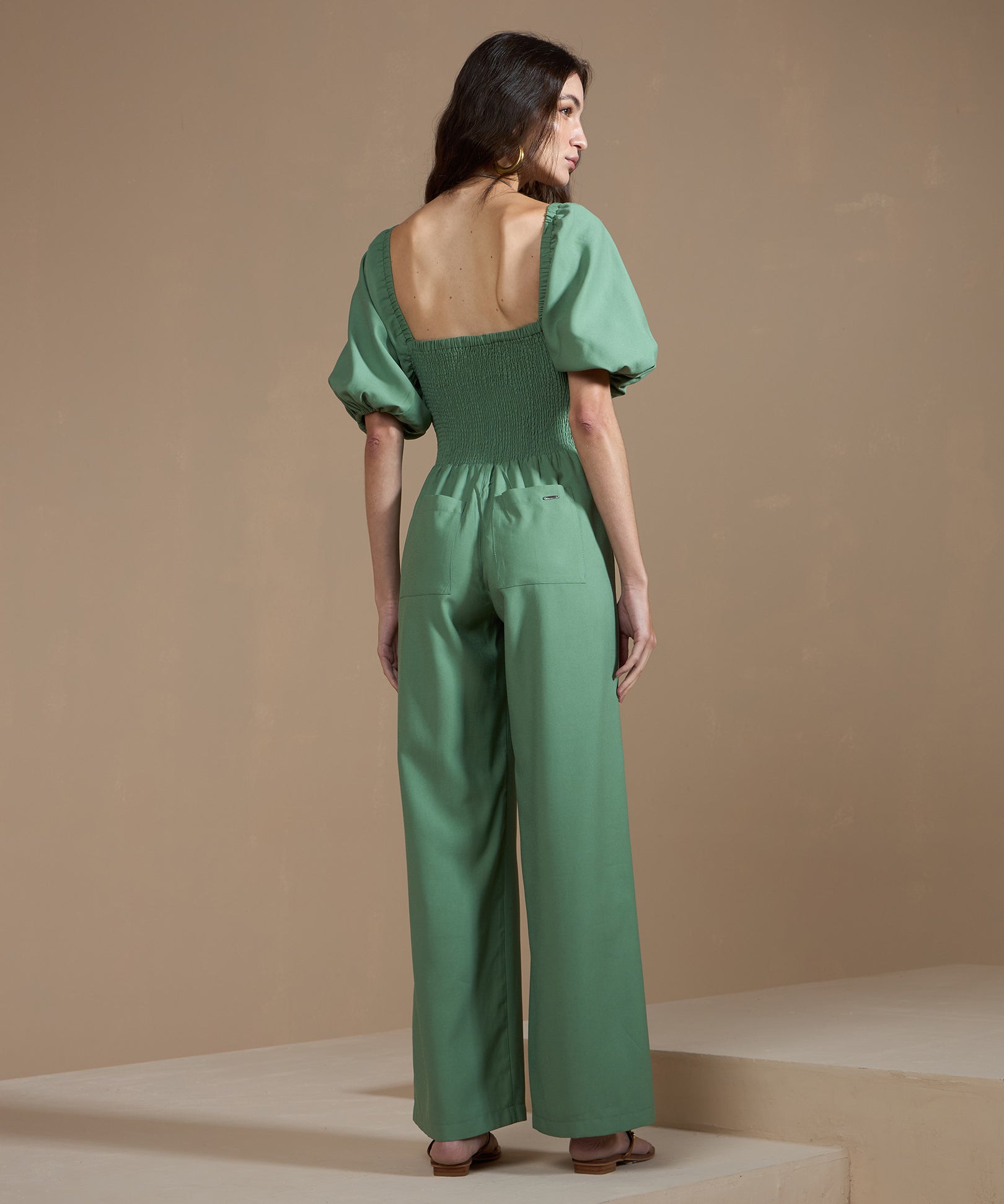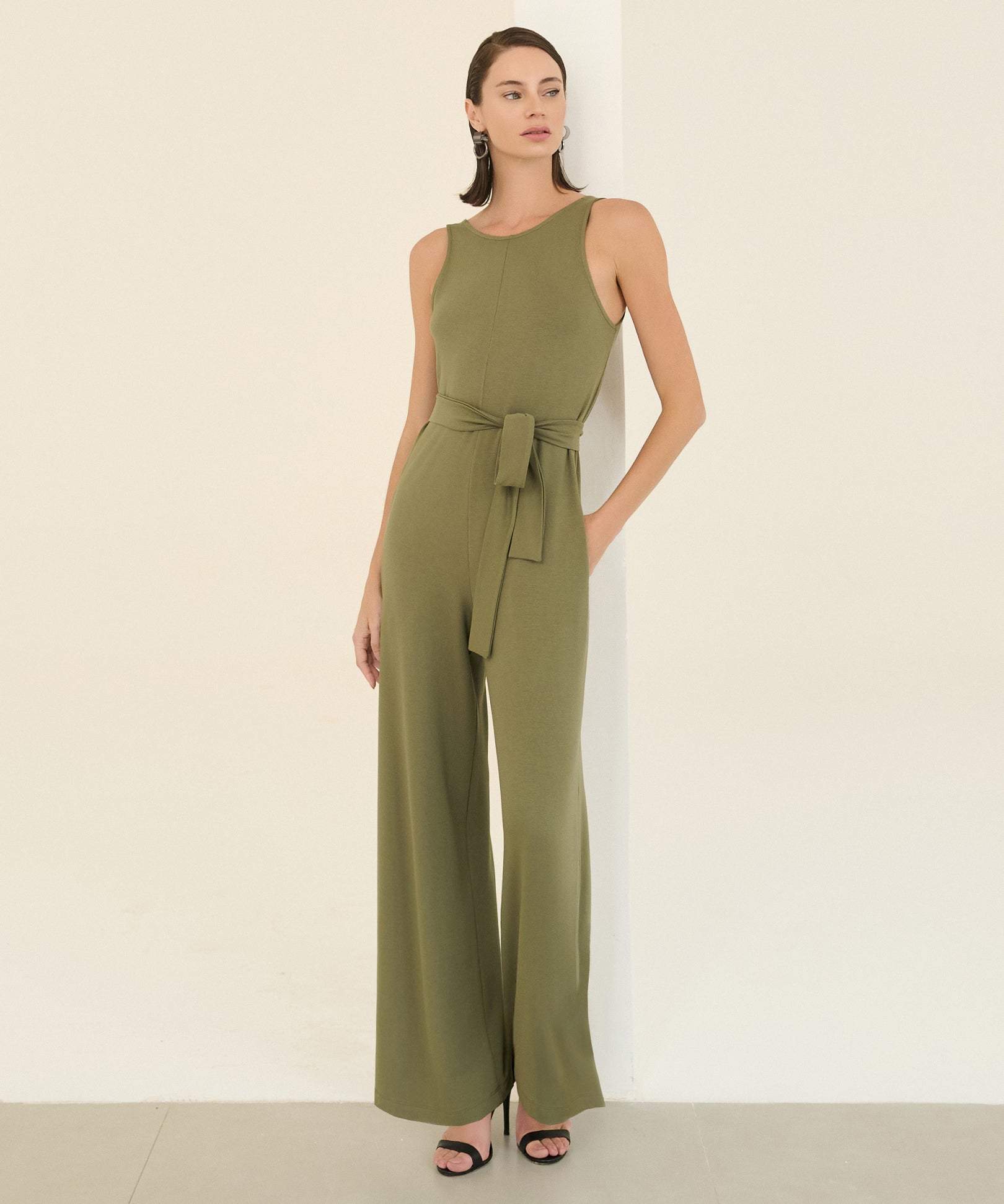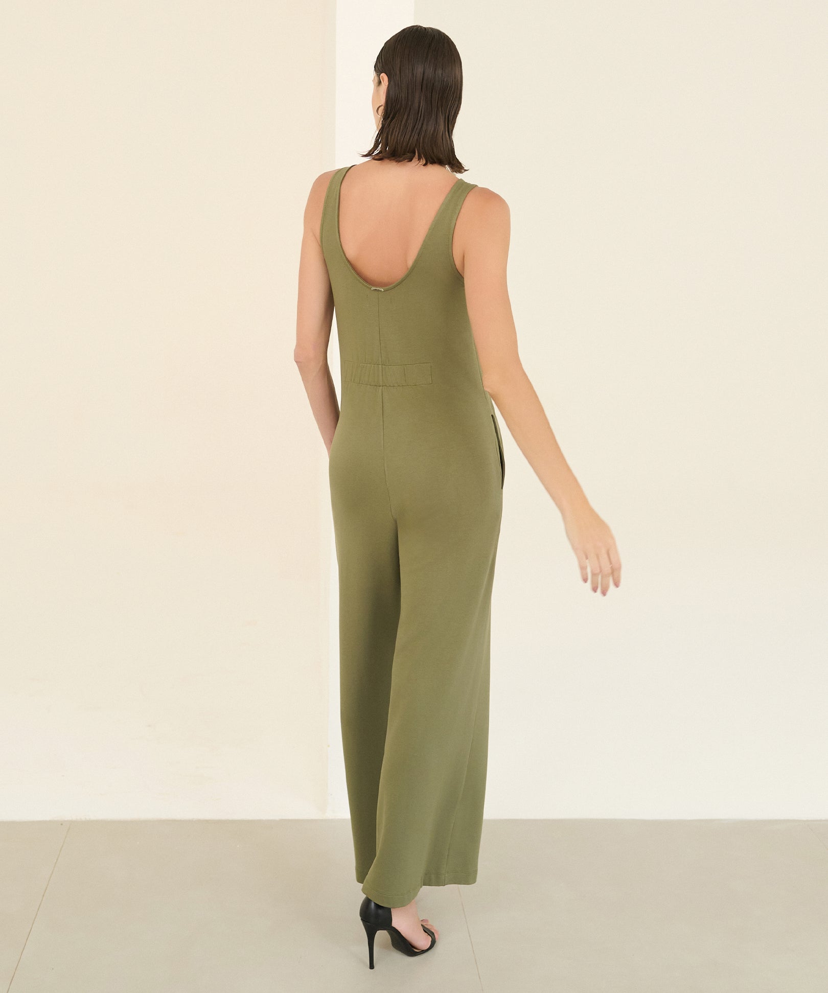 Macacão Essencial Pantalona Sem Mangas Oliva