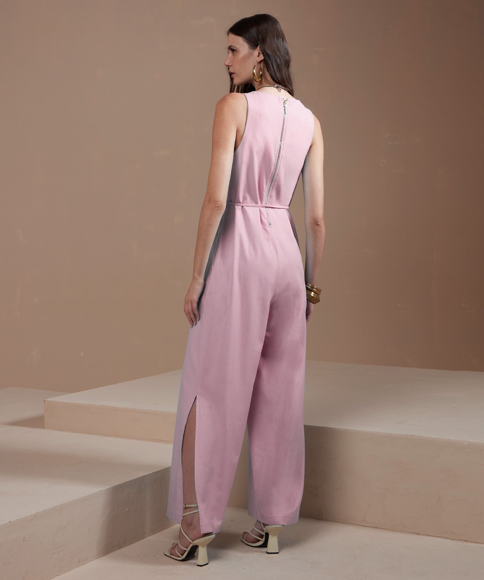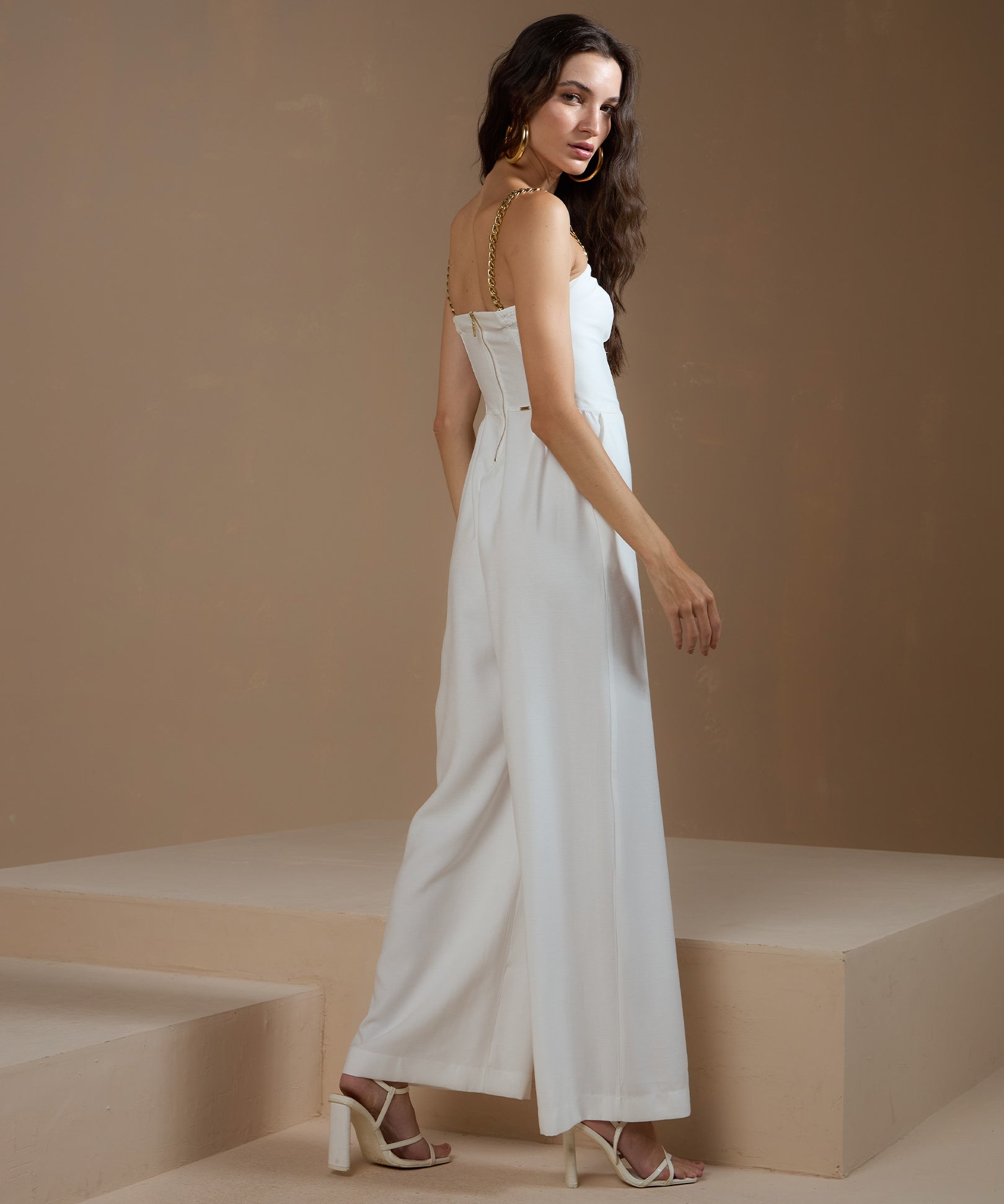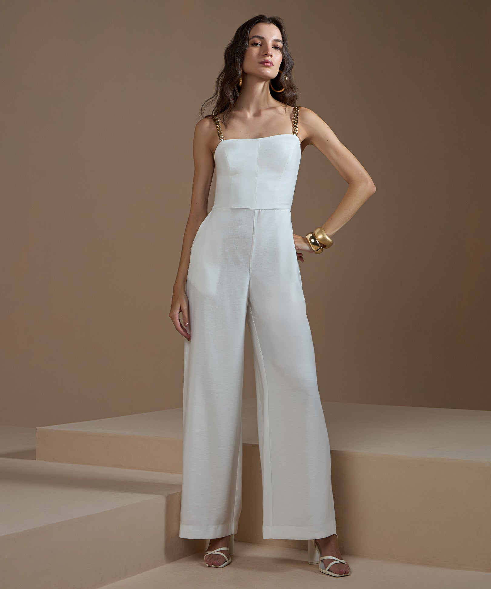 Macacão Alfaiataria Wide Leg Alças de Corrente