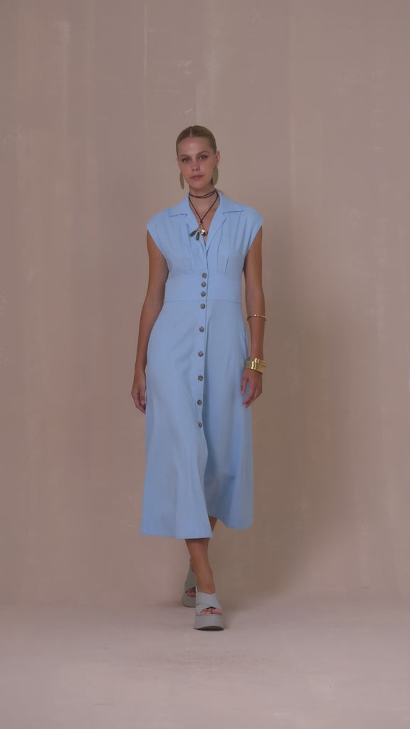 A peça que une elegância e praticidade para o seu dia a dia. Este vestido midi possui manga japonesa que oferece um caimento leve e moderno. A gola com lapela e o fechamento por botões na parte frontal dão um toque clássico e sofisticado, tornando-o ideal para diferentes ocasiões.