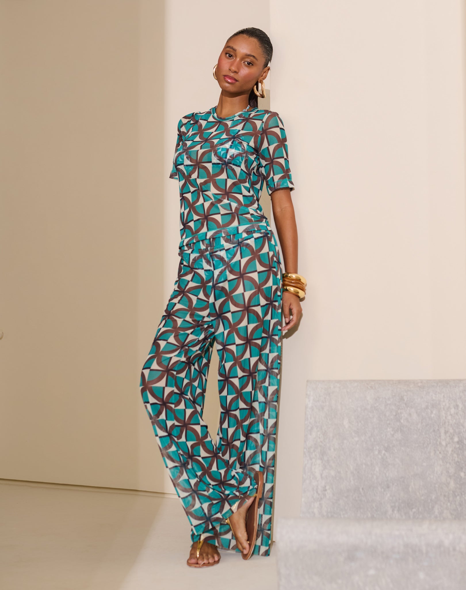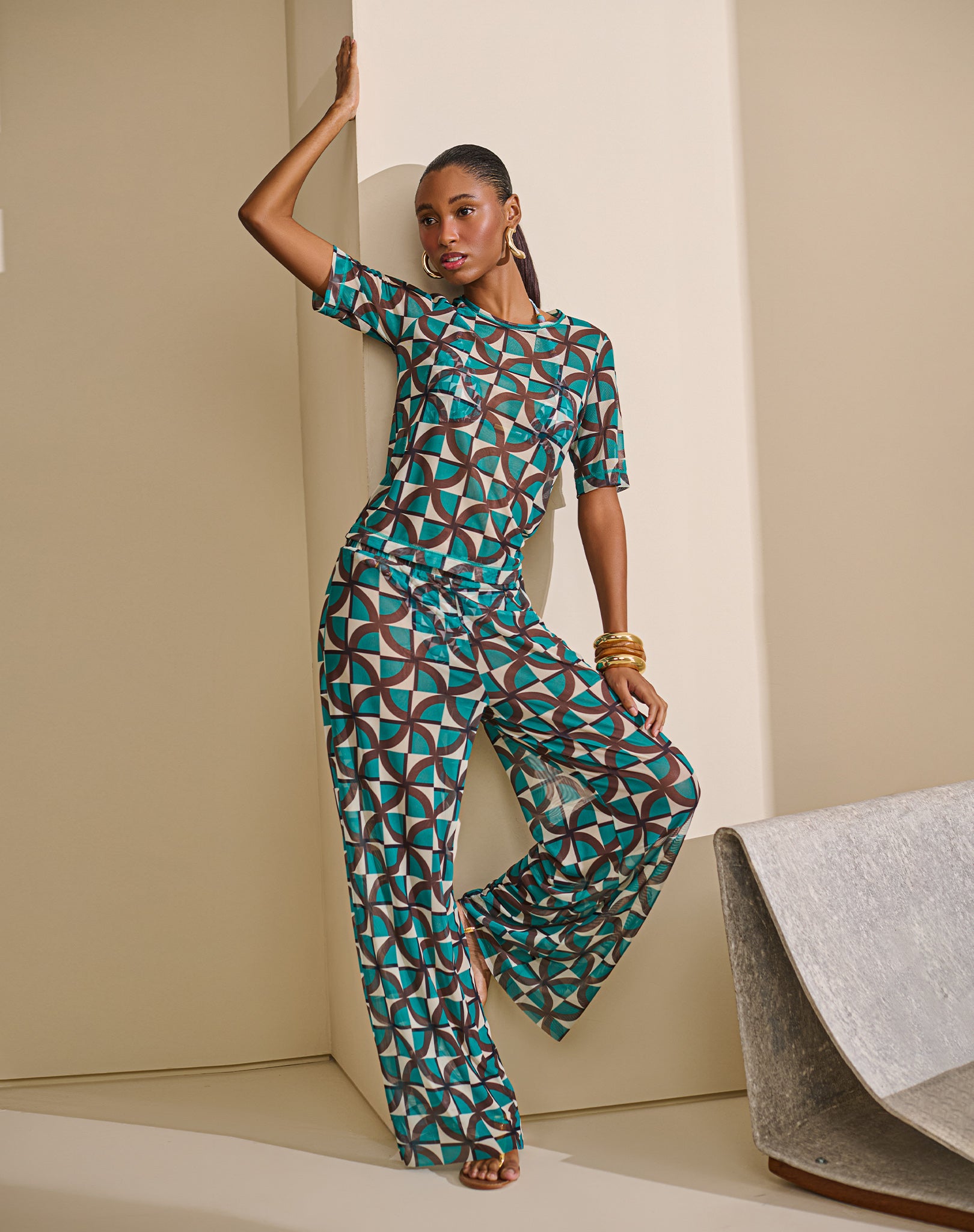 Calça Pantalona Tule Estampada
