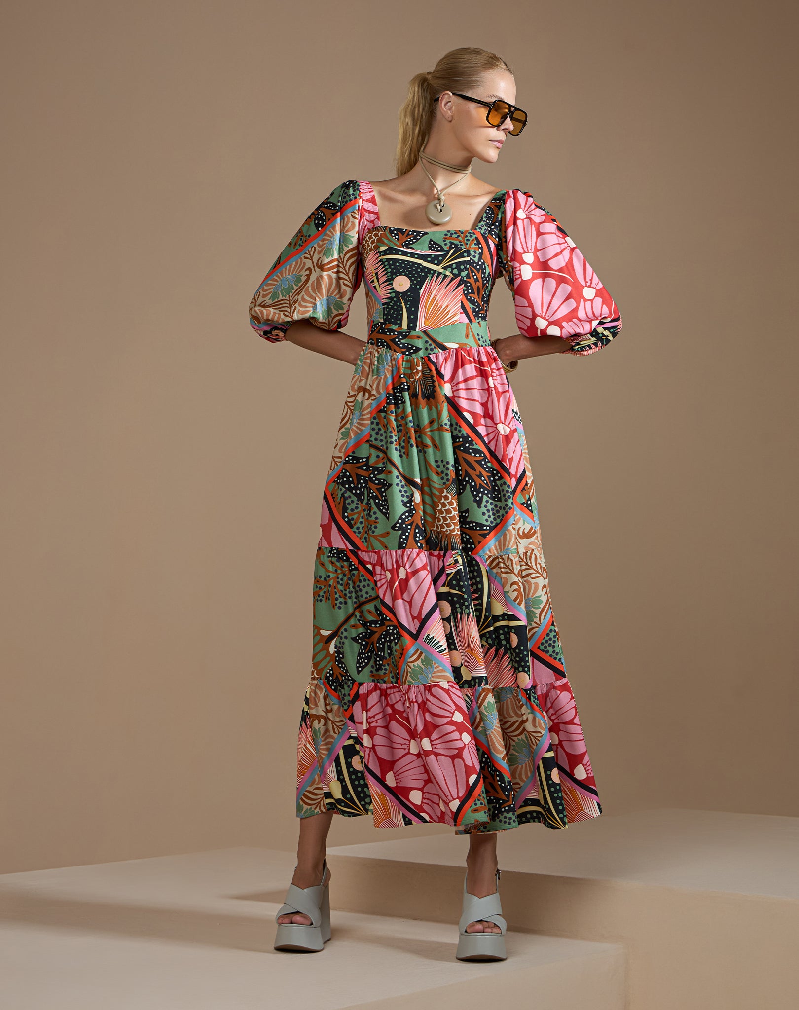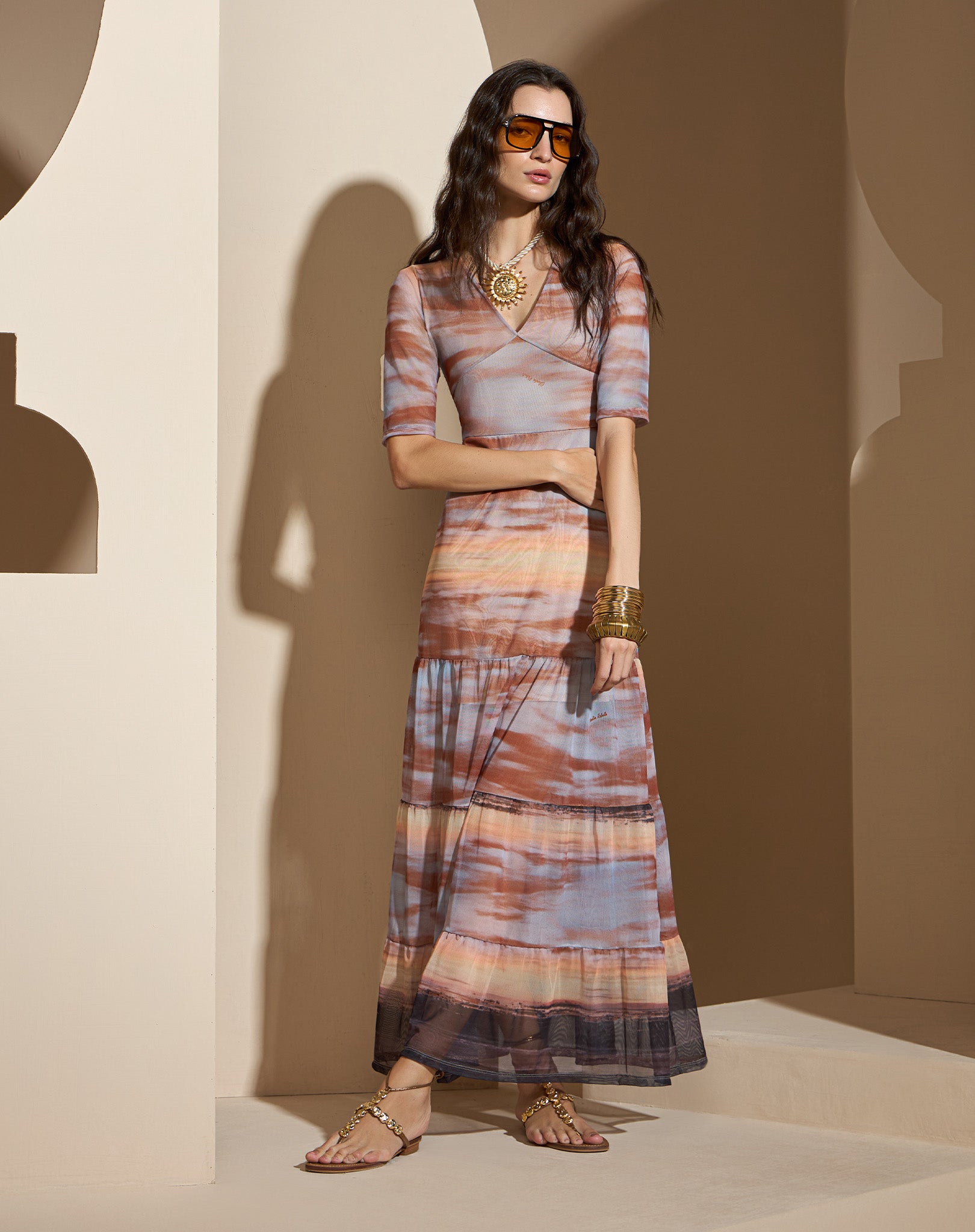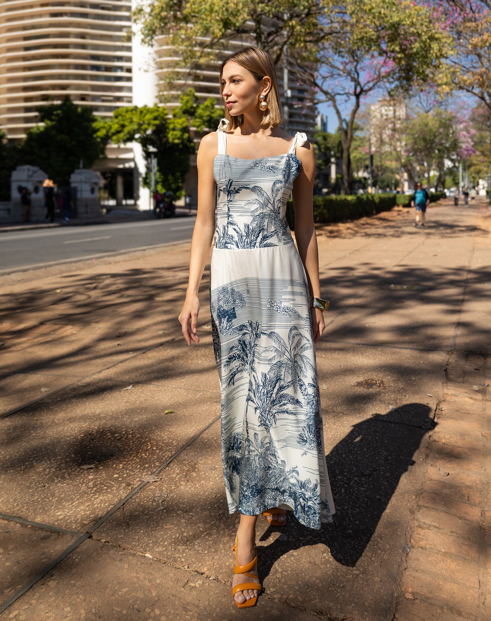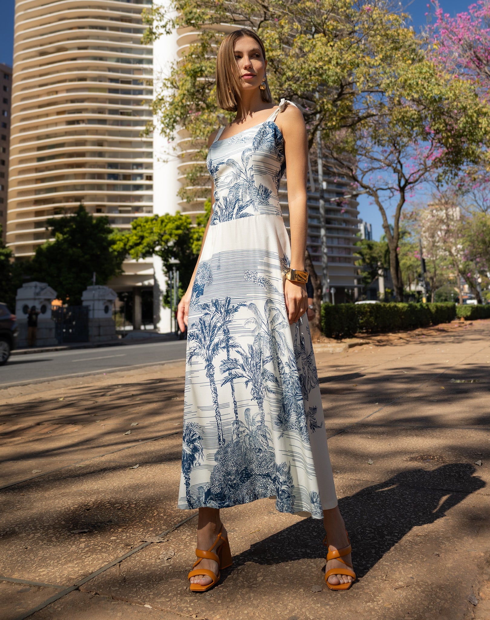 Vestido Longo Evasê Bordado - Alças com Ponteiras