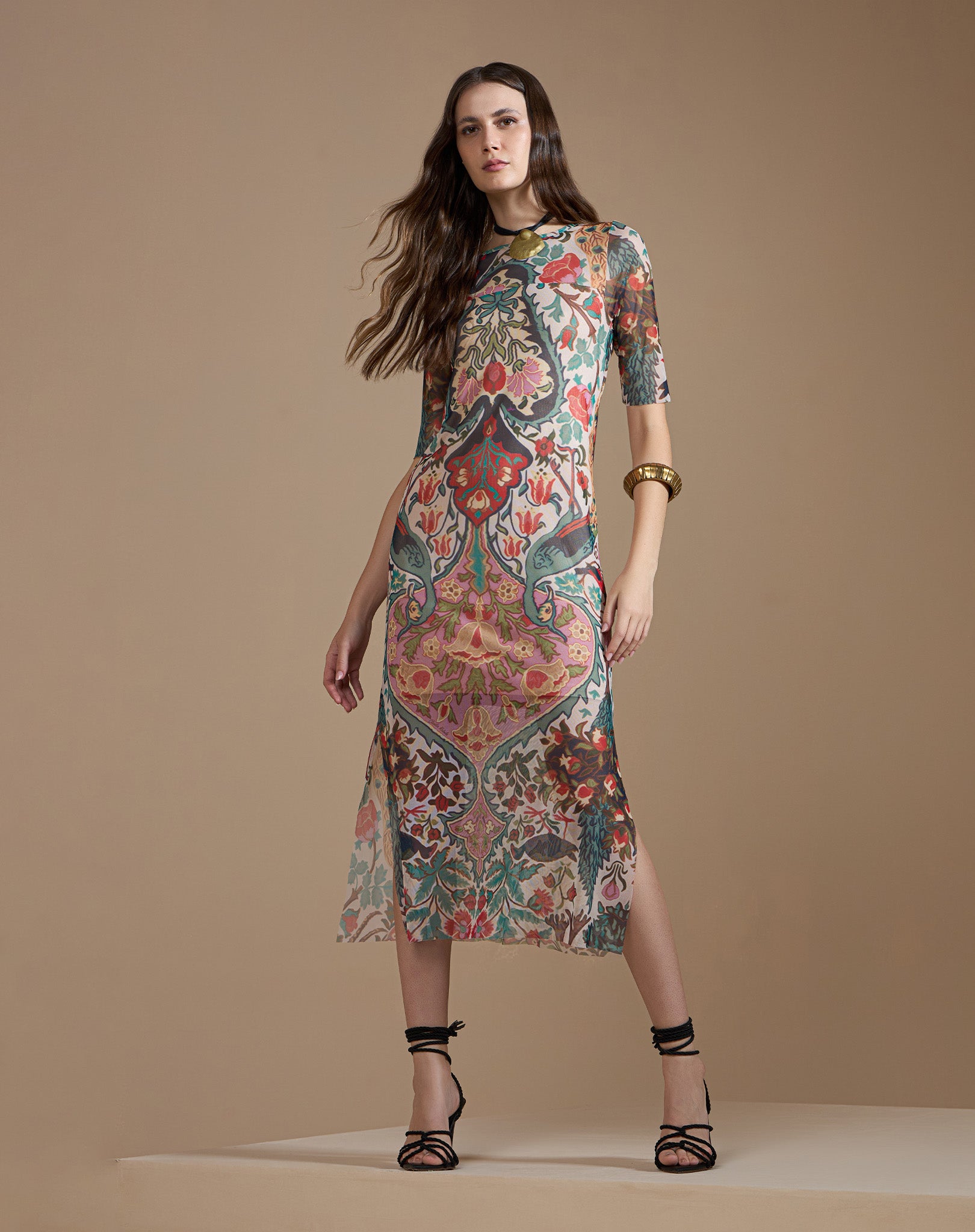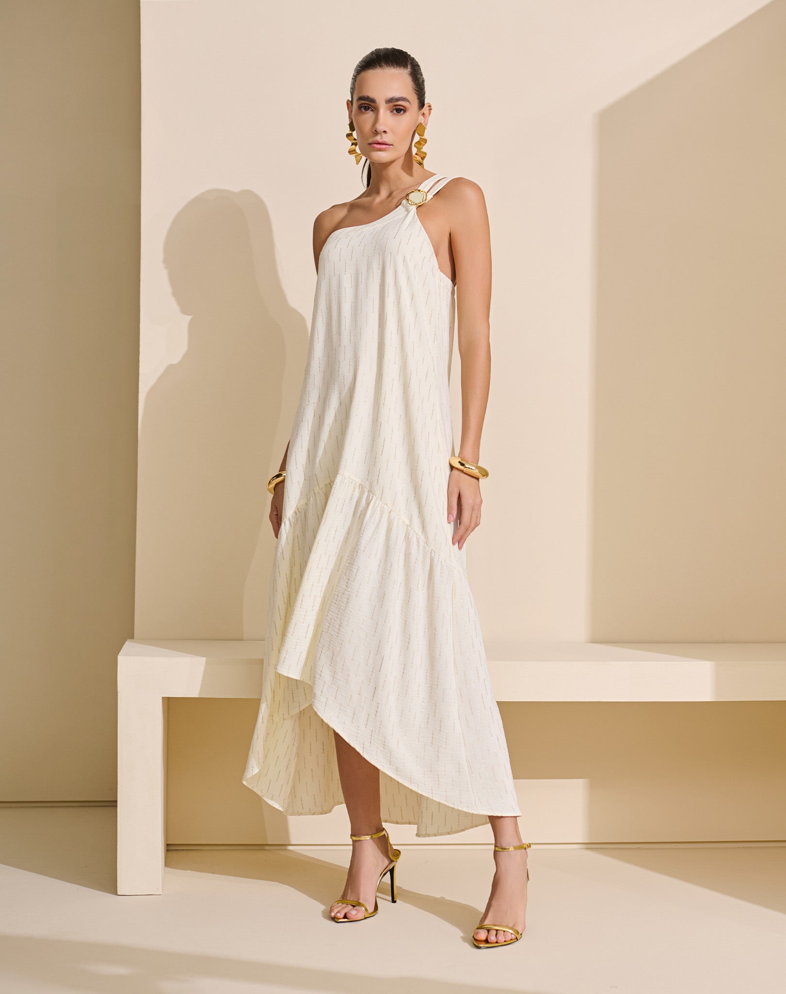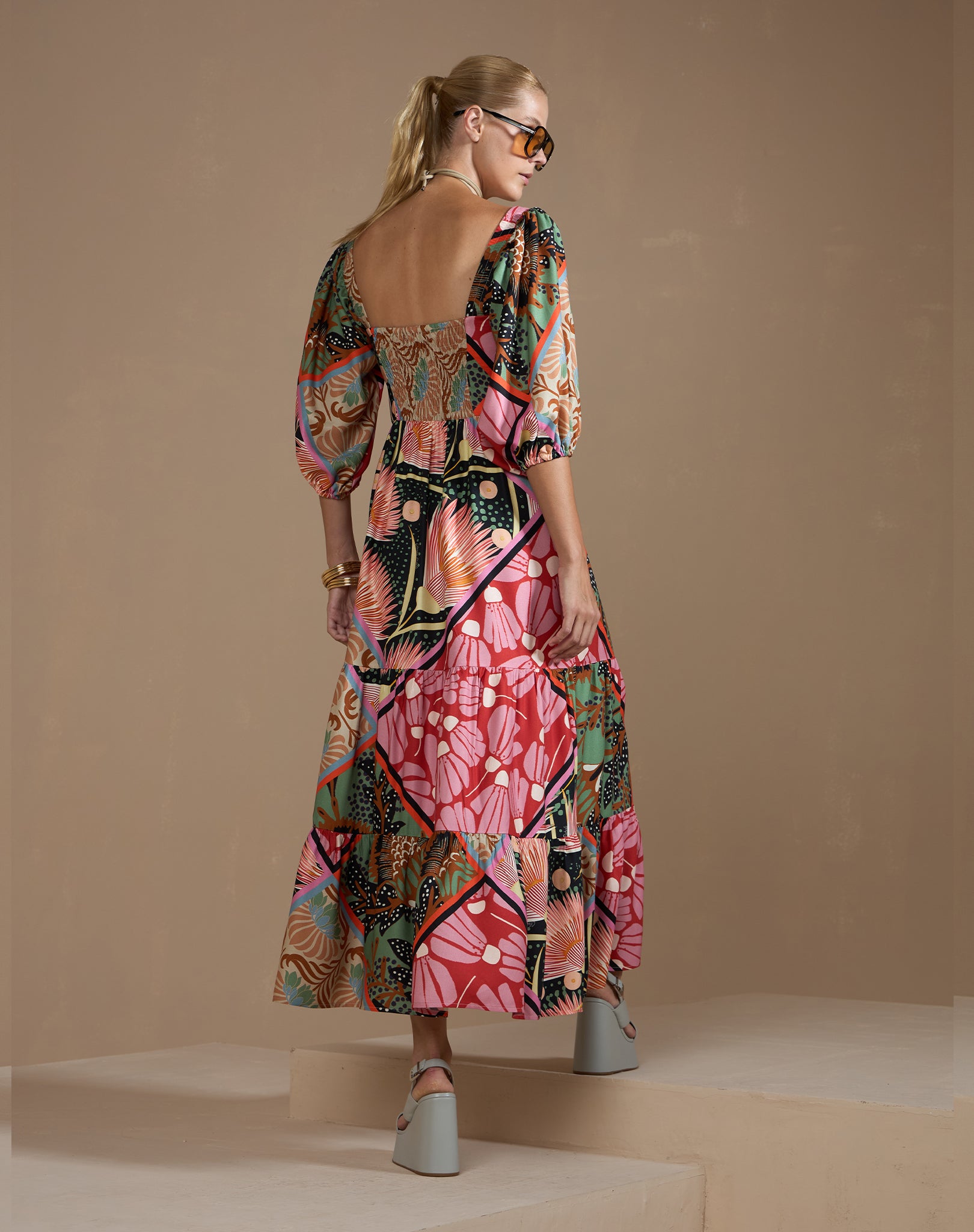 Vestido Longo Evasê Bordado - Alças com Ponteiras