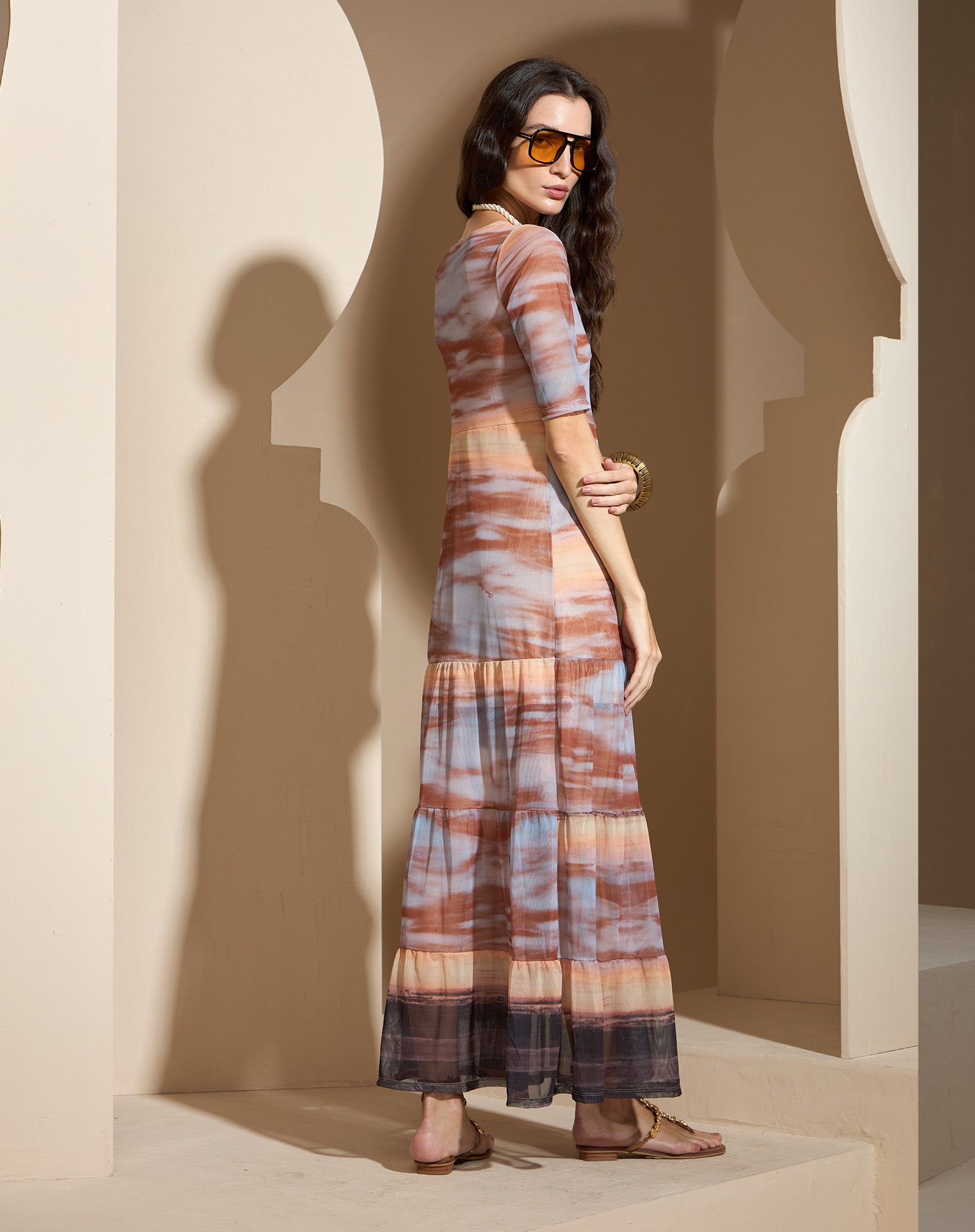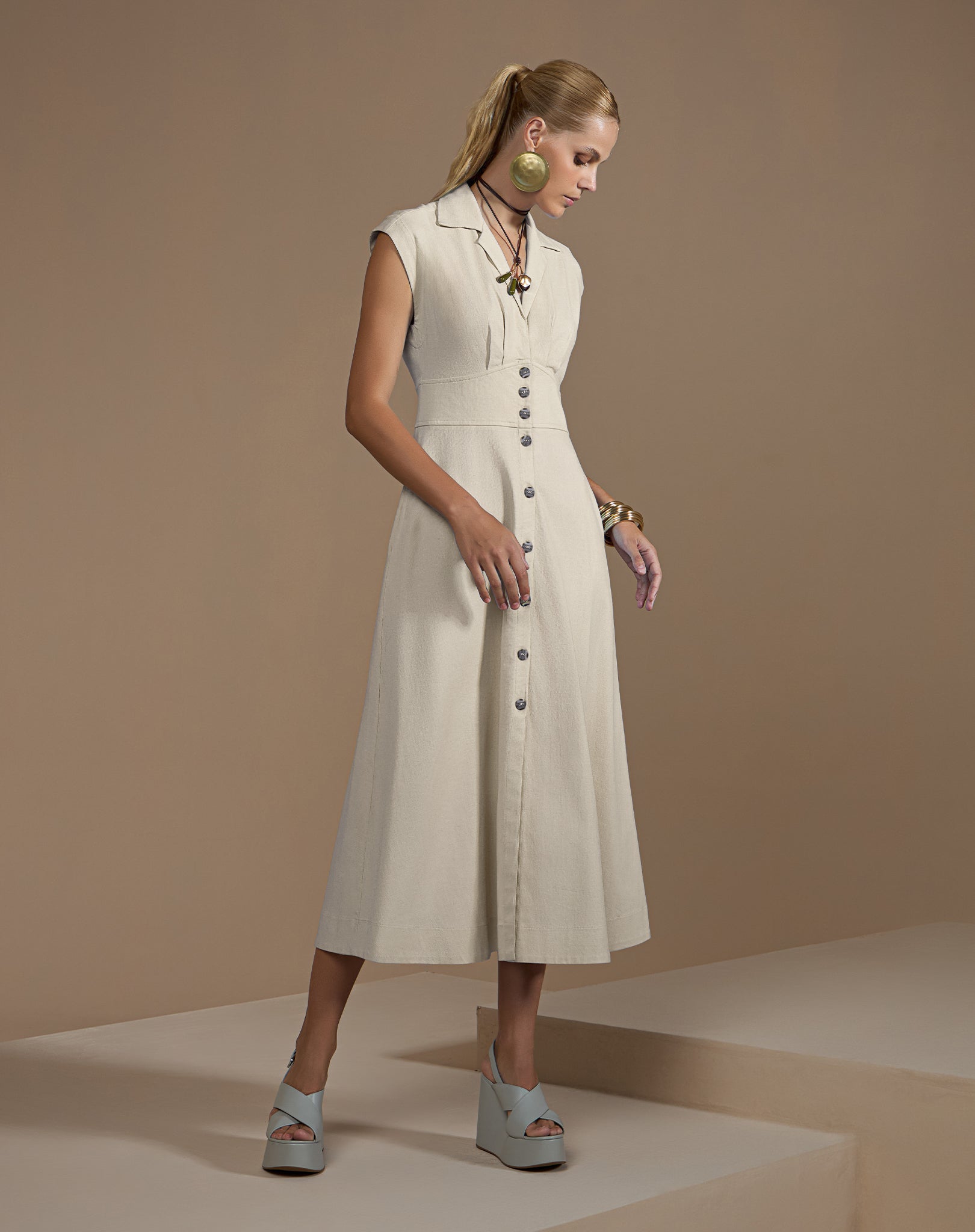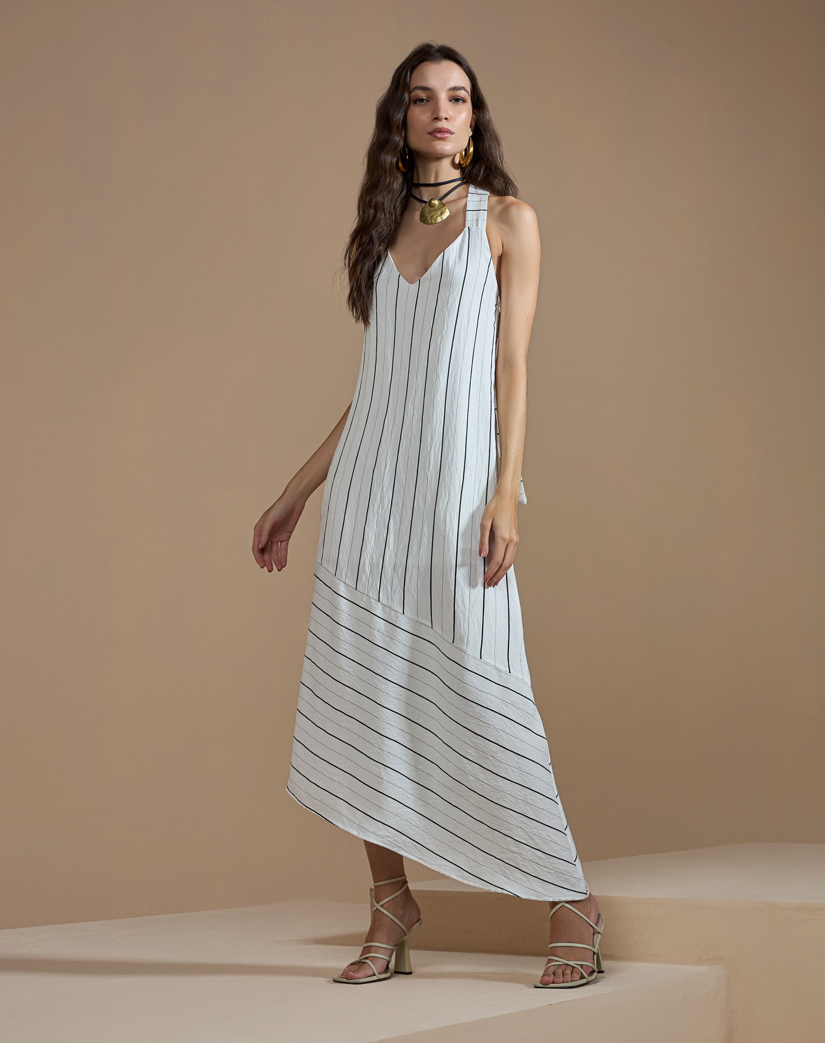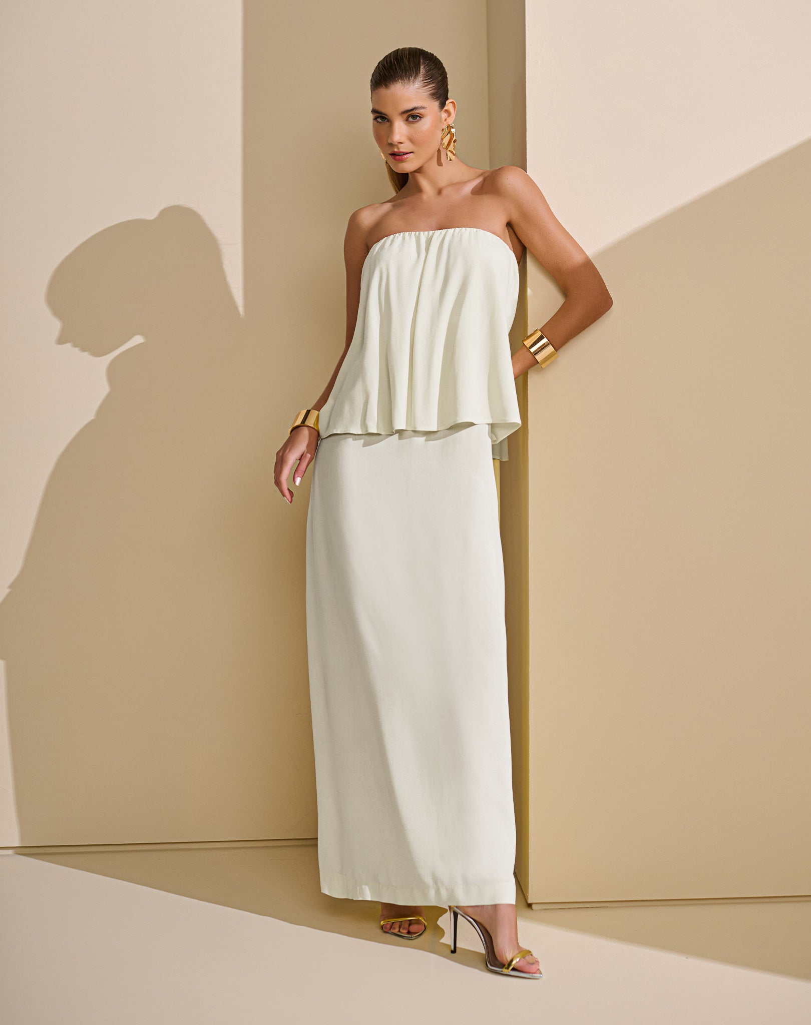 Vestido Longo Evasê Bordado - Alças com Ponteiras