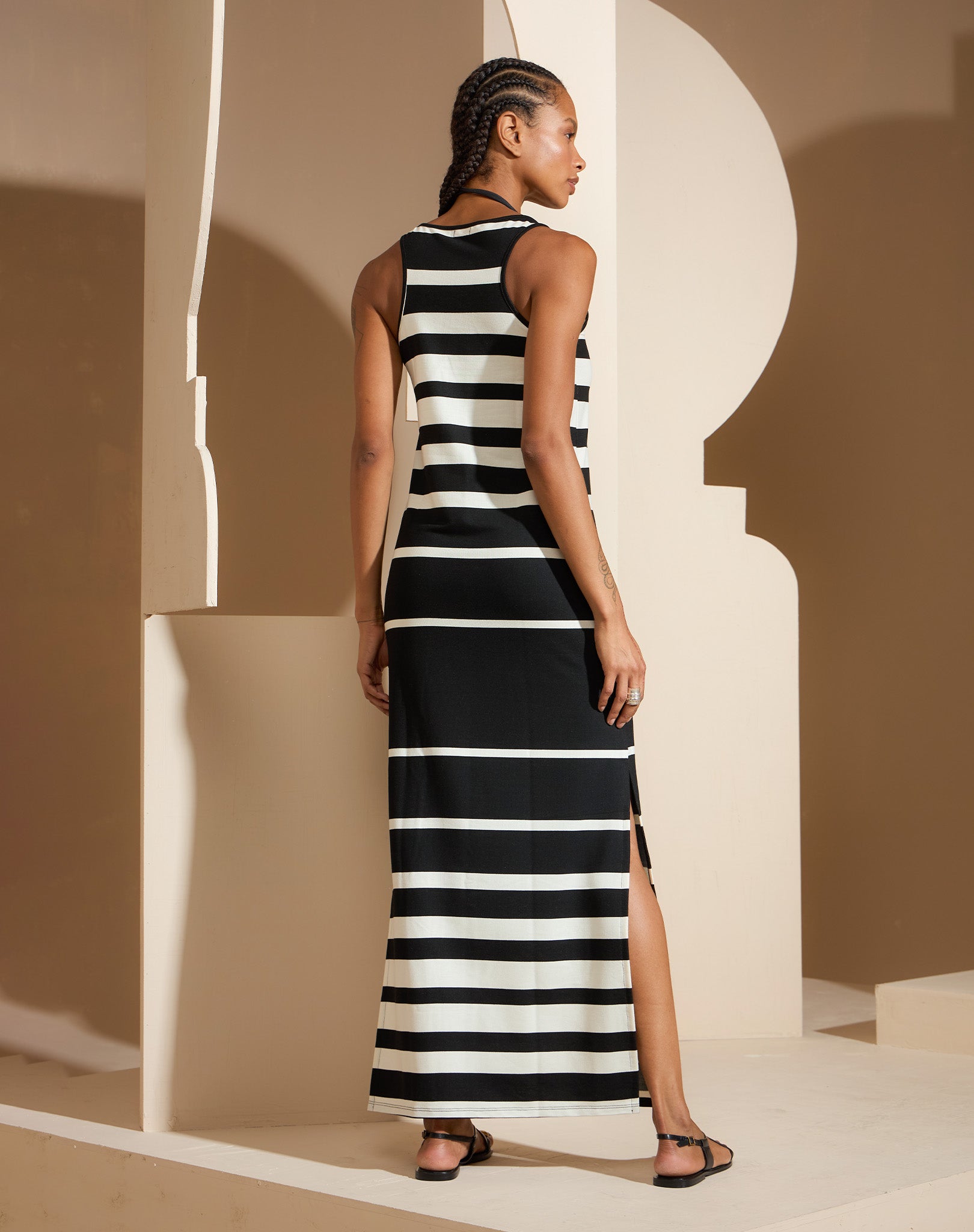 Vestido Maxi Listrado P&B