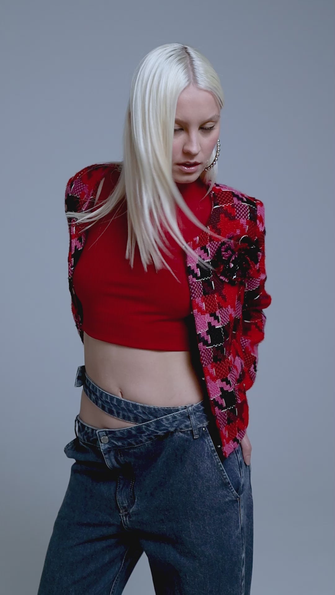 O casaquinho de tweed é aquele item atemporal que eleva qualquer look com um toque de sofisticação. Em tons marcantes de vermelho, rosa e preto, traz um visual feminino e estiloso, perfeito para composições modernas ou clássicas. Use com jeans para equilibrar o look com casualidade ou combine com peças de alfaiataria para um visual elegante e de presença. Uma peça curinga que permite diferentes propostas — do dia a dia ao trabalho e encontros especiais.